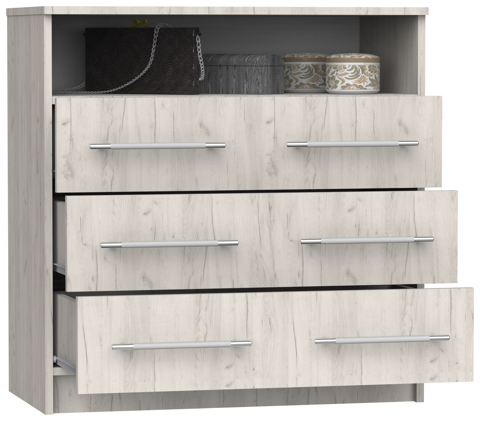 Комод Капри-4 с 3 ящиками и дверцами, ШхГхВ: 81х43х101 см, дуб крафт белый
