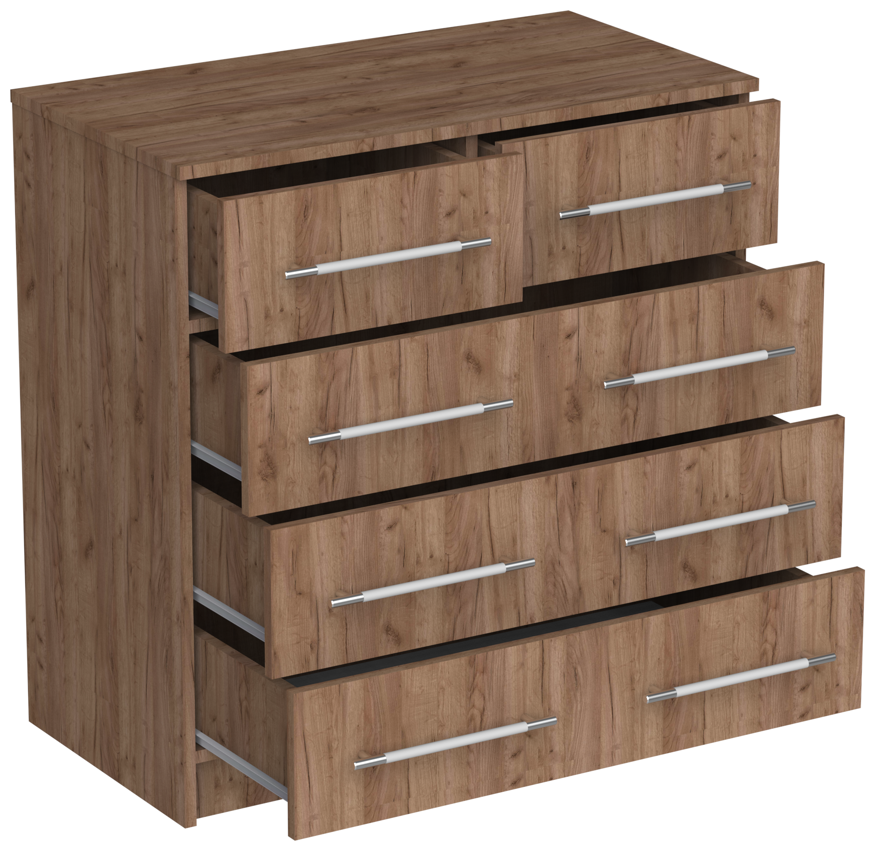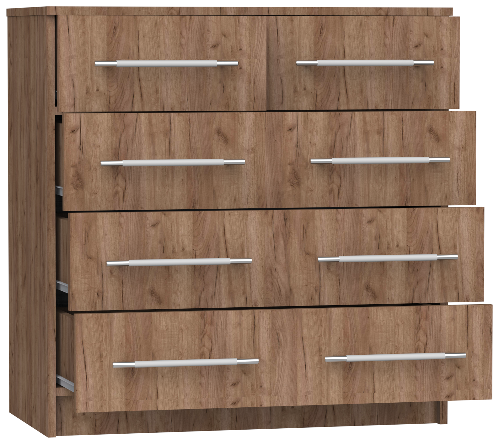 Комод Капри-5 с 4 ящиками и 8 ручками, ШхГхВ: 81х43х83 см, дуб сонома