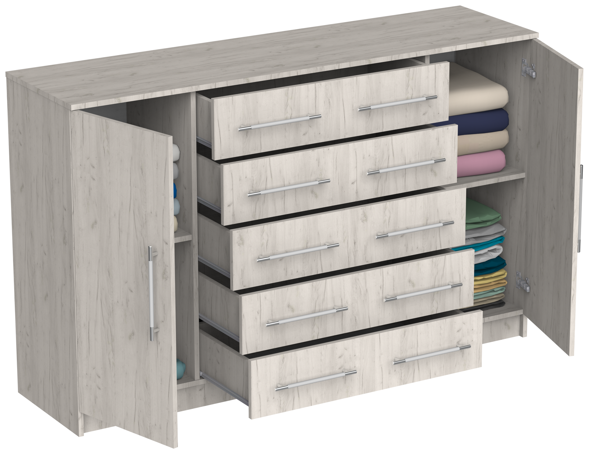 СохранитьКомод Капри-9 с 5 ящиками и 2 дверцами, ШхГхВ: 161х43х101 см, дуб крафт белый интересное: