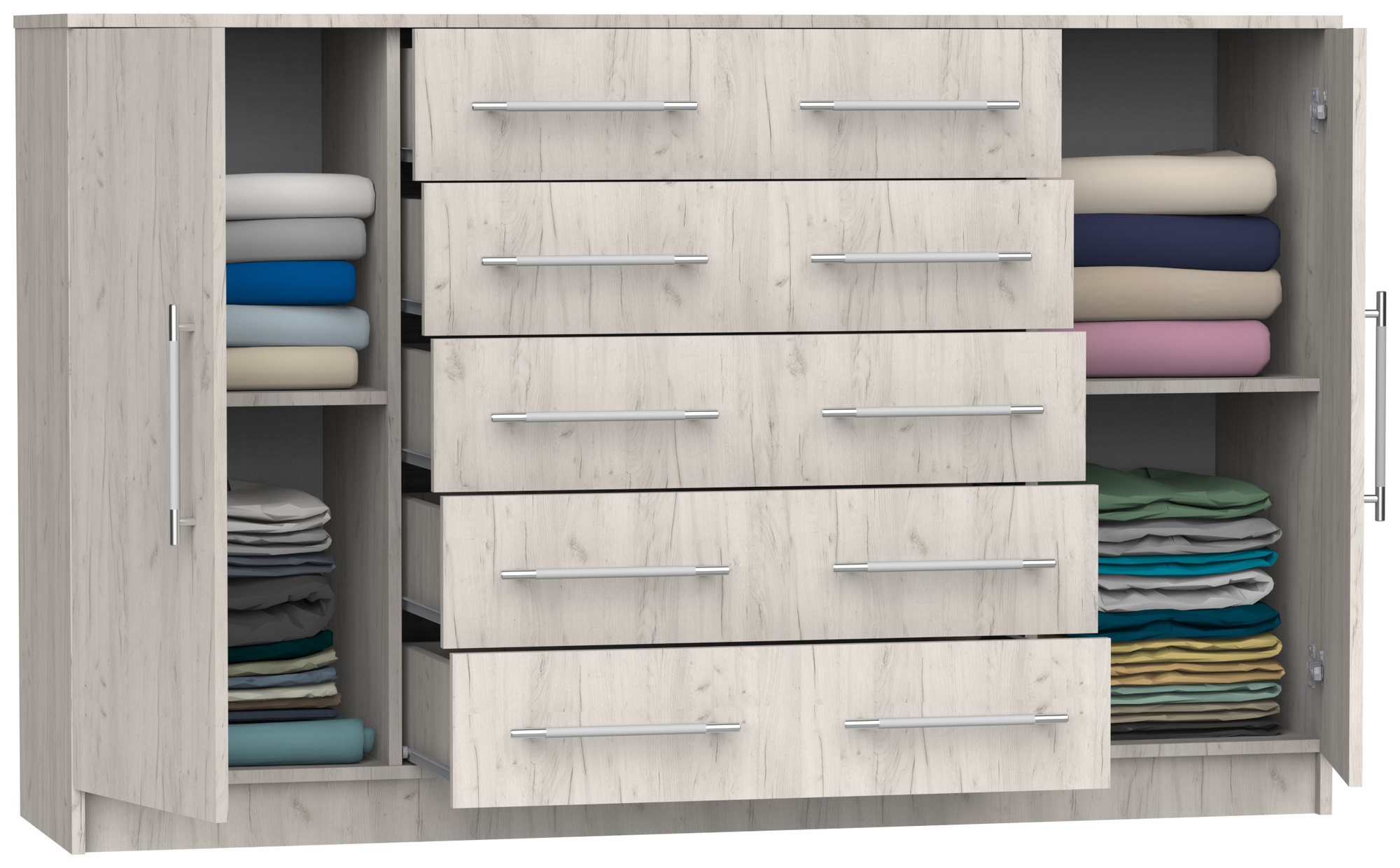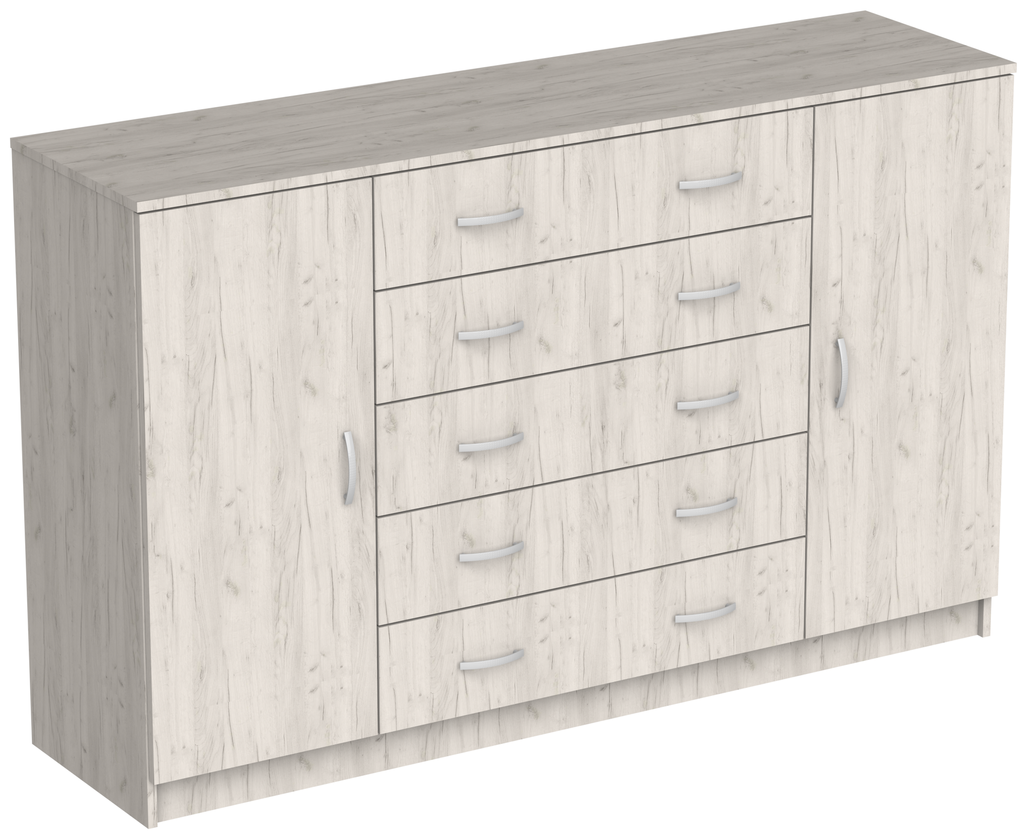 Купить Комод Капри-9 с 5 ящиками и 2 дверцами, ШхГхВ: 161х43х101 см, дуб крафт белый