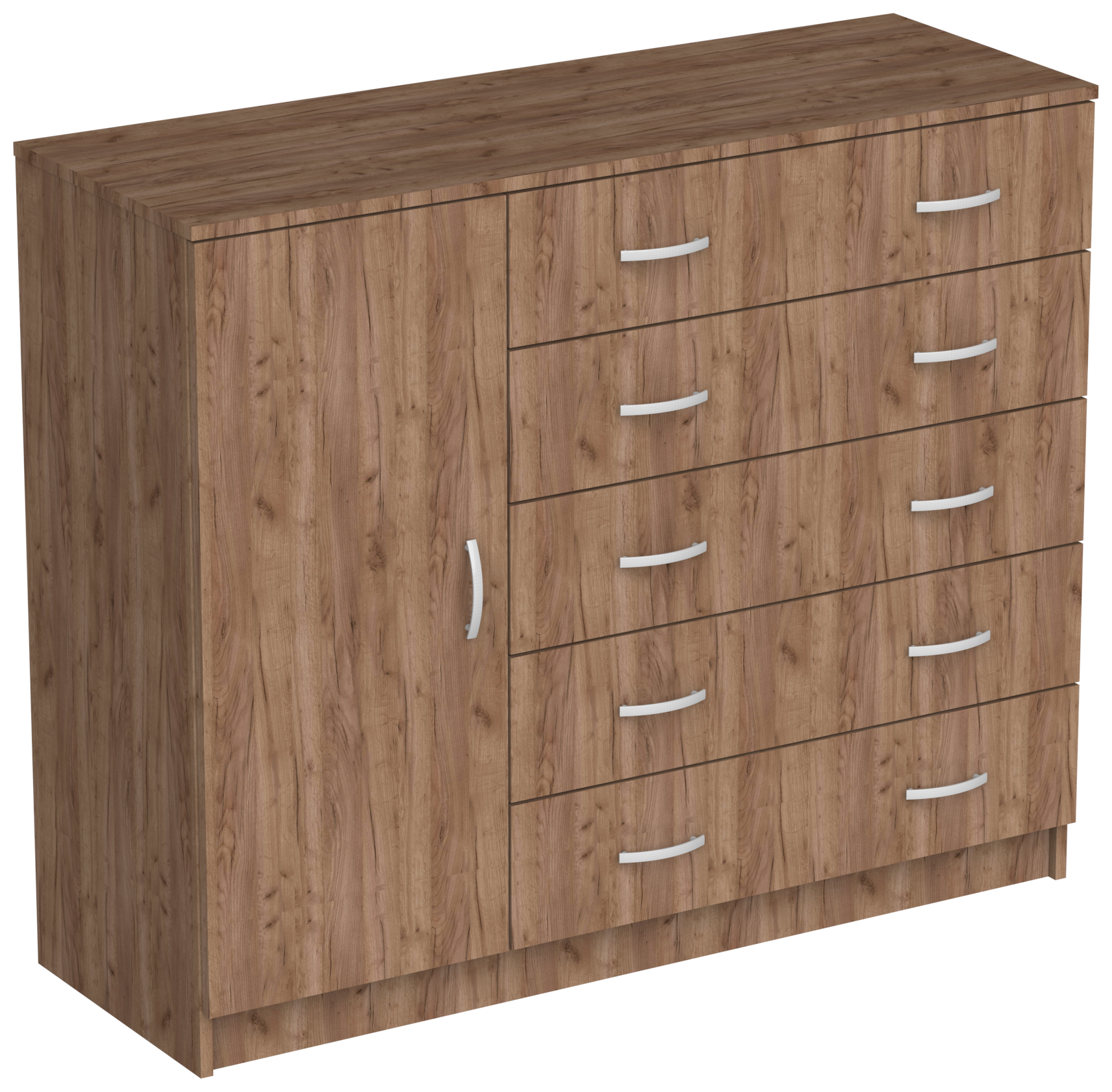 Комод Капри-8 с 5 ящиками и дверью, ШхГхВ: 121х43х101 см, дуб сонома