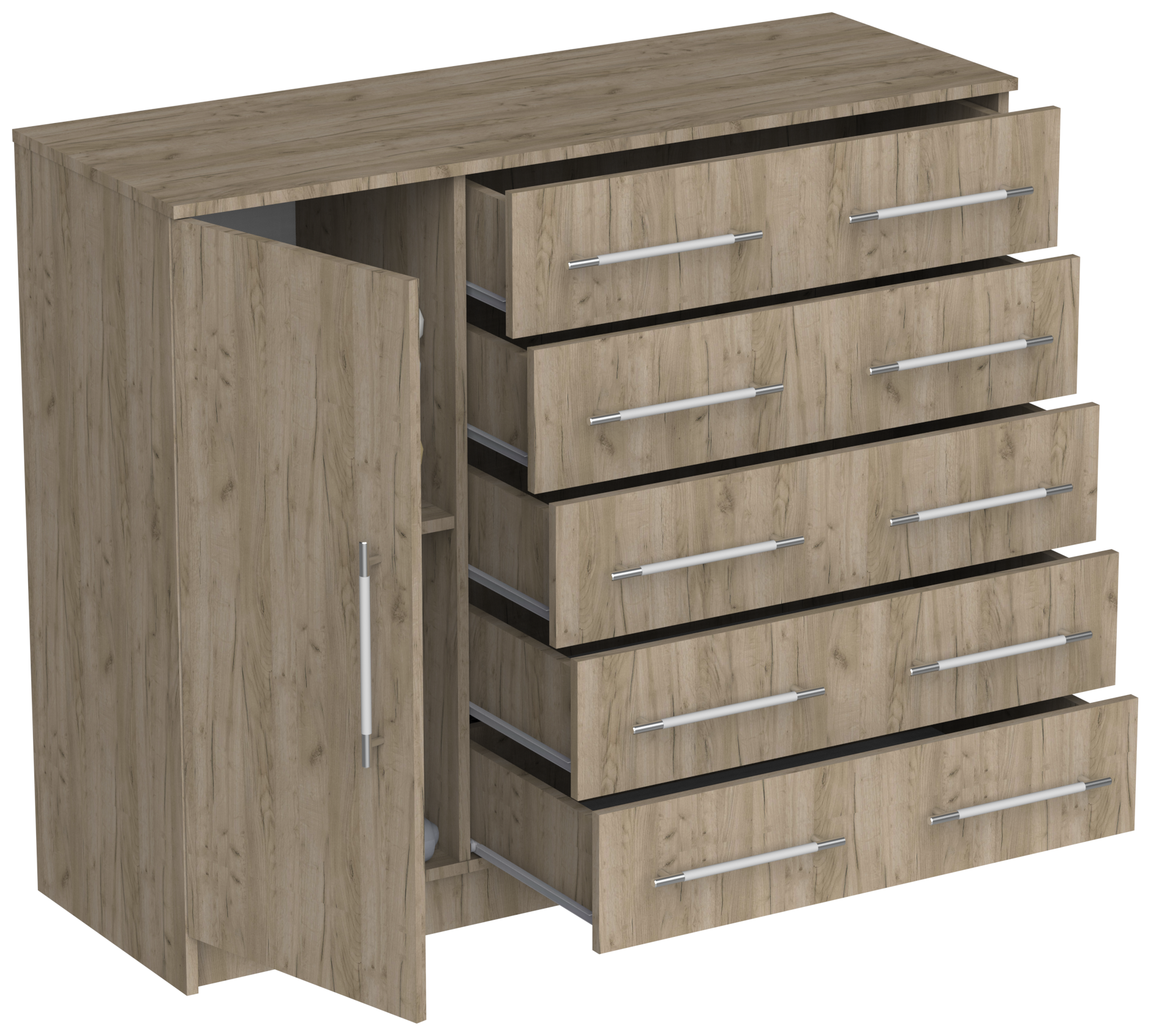 Комод Капри-8 с 5 ящиками и дверью, ШхГхВ: 121х43х101 см, дуб сонома