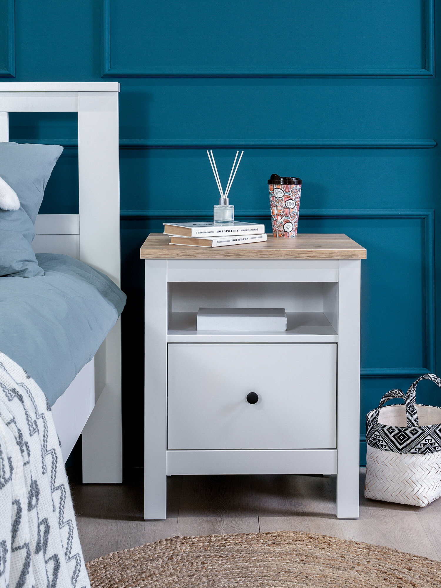 Купить Тумба прикроватная ГУД ЛАКК "сага", 1 ящик, 51х41х62 см, шариковые направляющие с доводчиком, белая/ясень