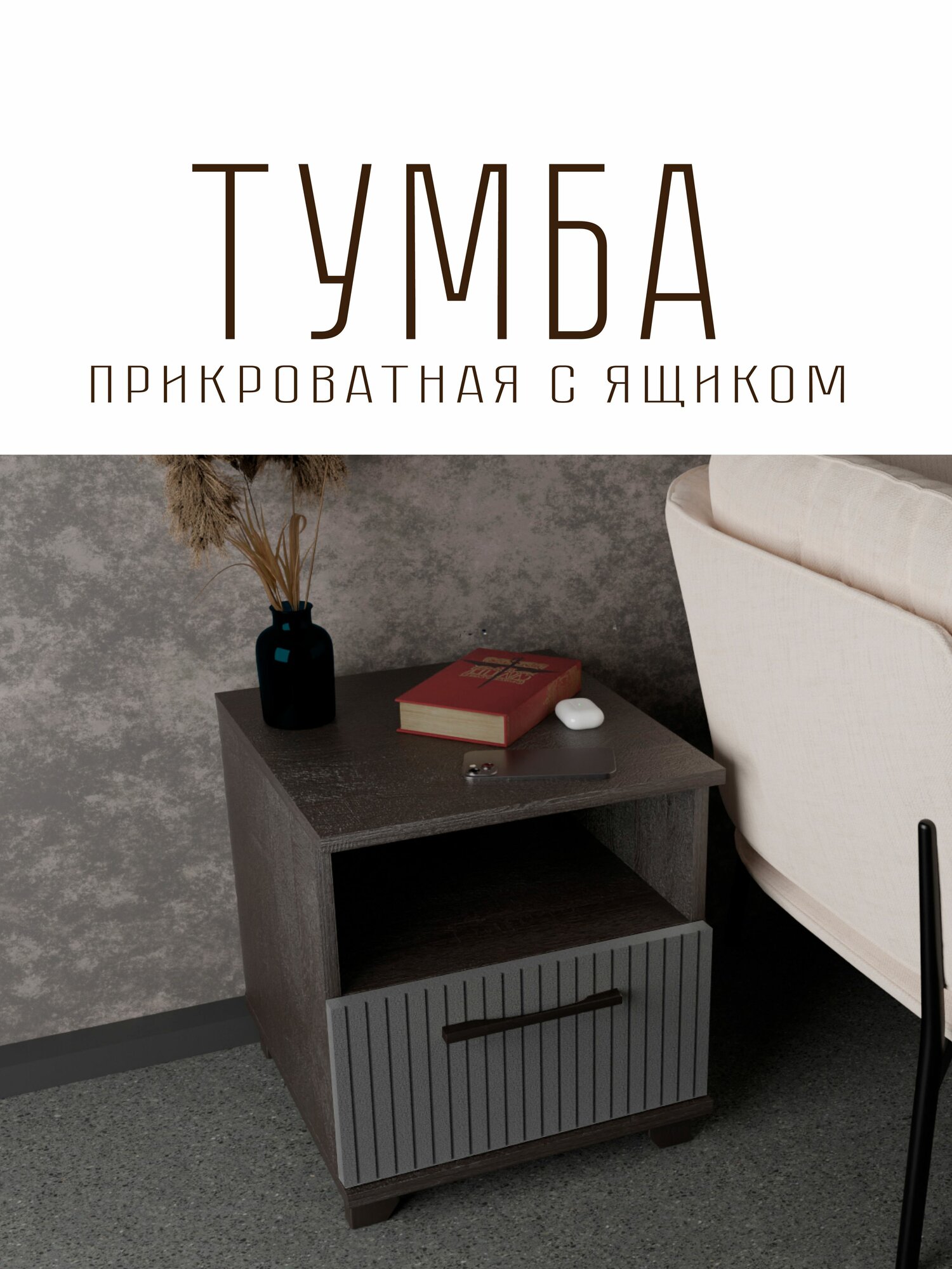 СохранитьТумба прикроватная Копенгаген с ящиком ЛДСП Венге / МДФ Серый графит 40х40x45 интересное:
