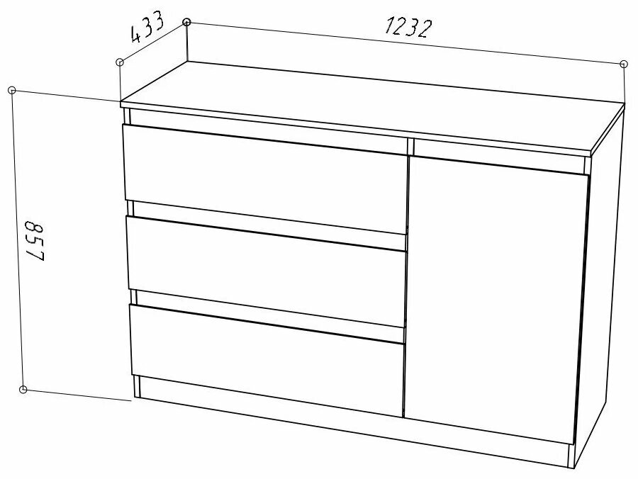 Купить Комод c 3 ящиками и распашной дверцей STARK T-7 Дуб Вотан 123,2 х 85,7 х 43,3 см (ШхВхГ)