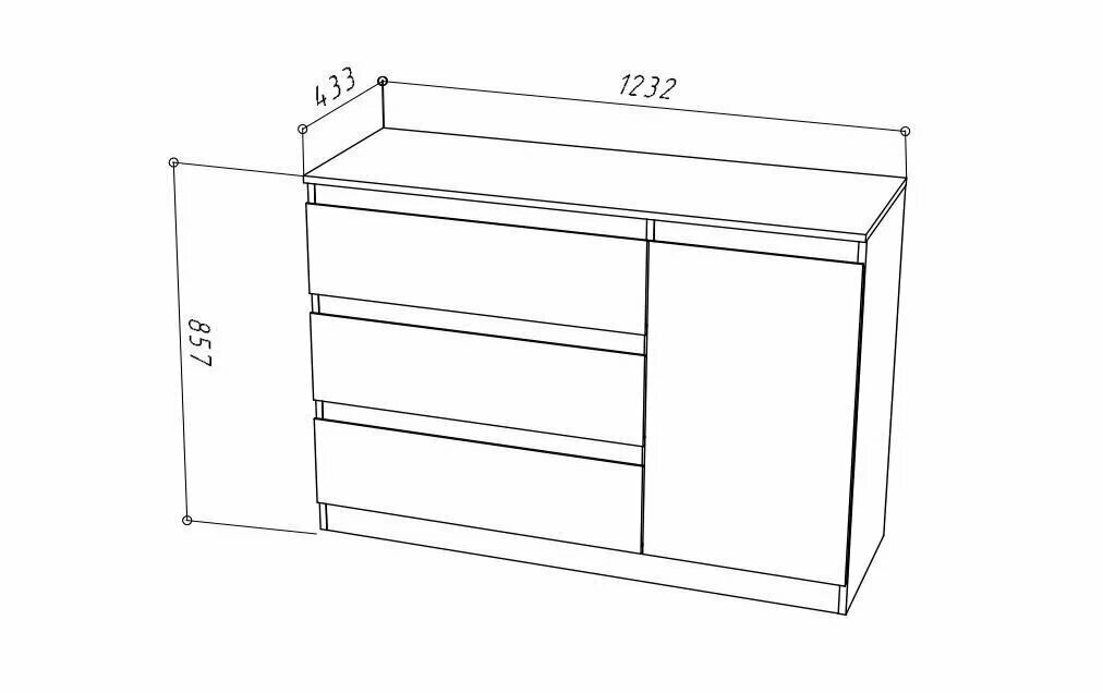 Комод c 3 ящиками и распашной дверцей STARK T-7 Дуб Вотан 123,2 х 85,7 х 43,3 см (ШхВхГ)