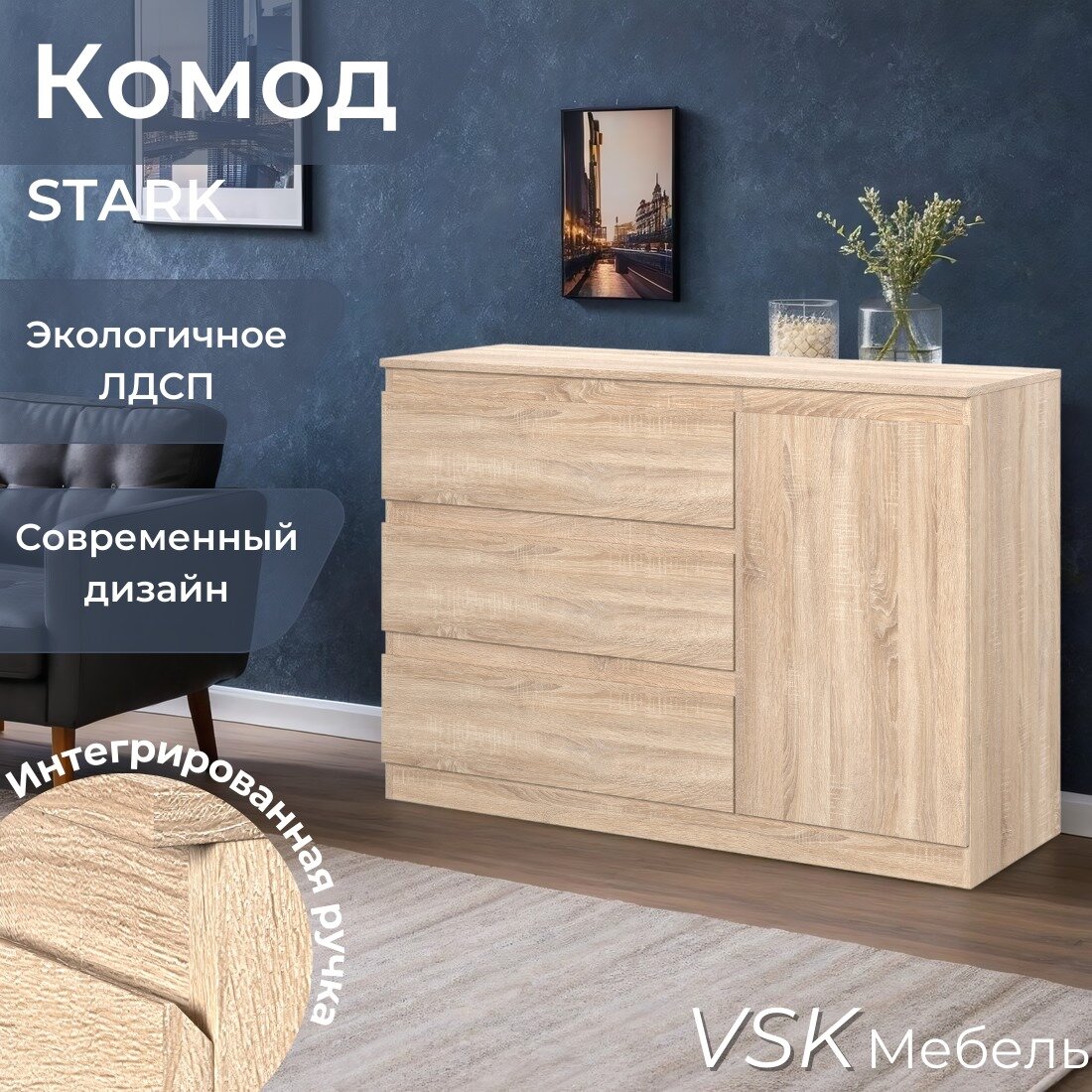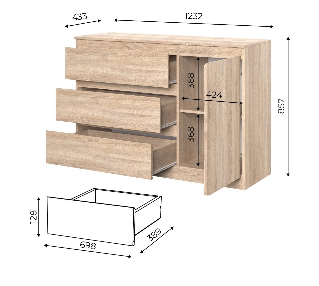Комод деревянный с ящиками и дверцей STARK T-7 Дуб Сонома 123,2 х 85,7 х 43,3 см (ШхВхГ) интересное: