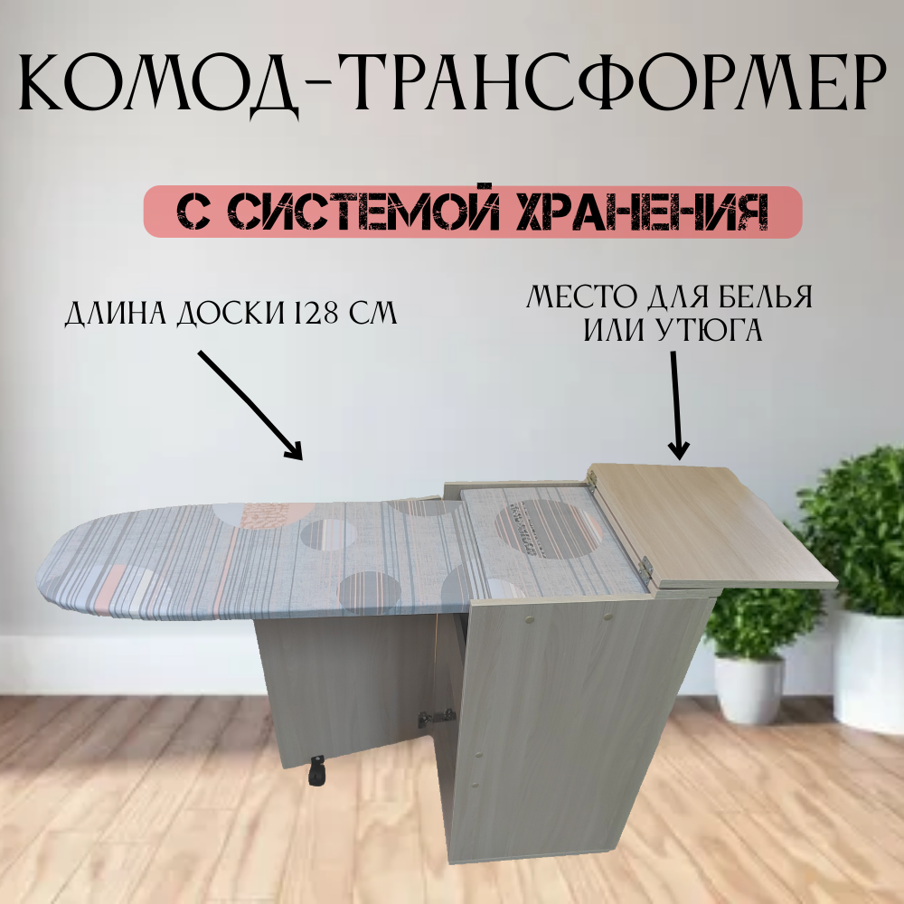 Стол-тумба, с гладильной доской, на колесах, цвет ясень шимо светлый, ЛДСП, 40*84*42 интересное: