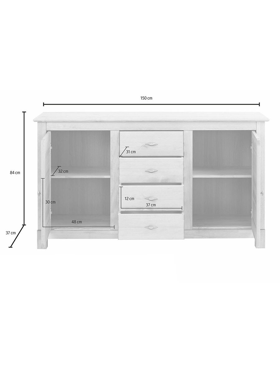 Купить Комод ММЦ Гостиная Рауна 24 (белый воск УКВ) из массива сосны, 150 х 84 х 37 см