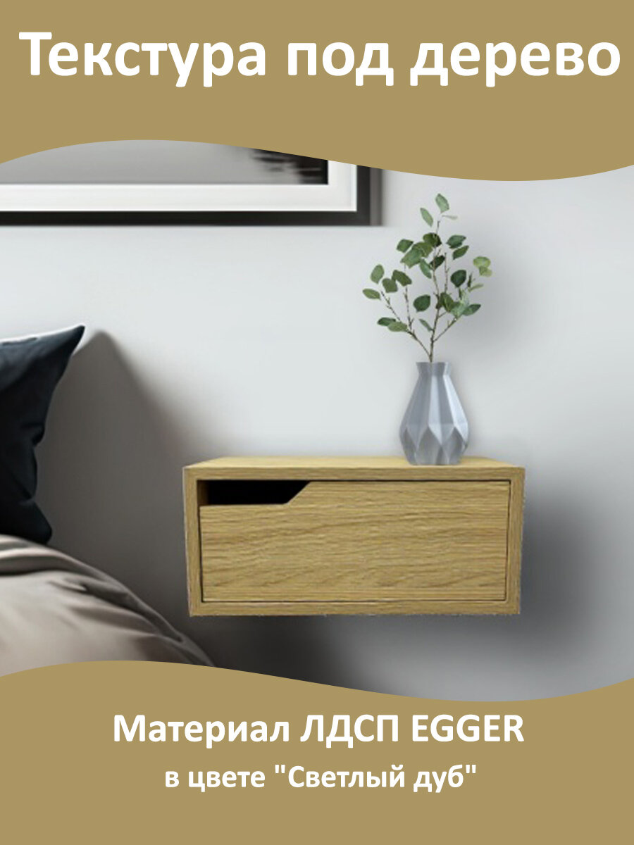 СохранитьТумба прикроватная "Attra" подвесная в спальню, настенная, 1 ящик, сторона левая, 45х30х20 см, консоль интересное: