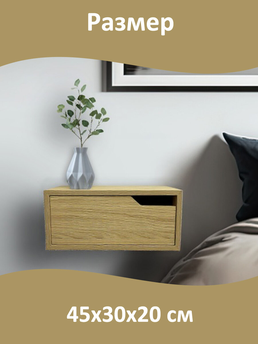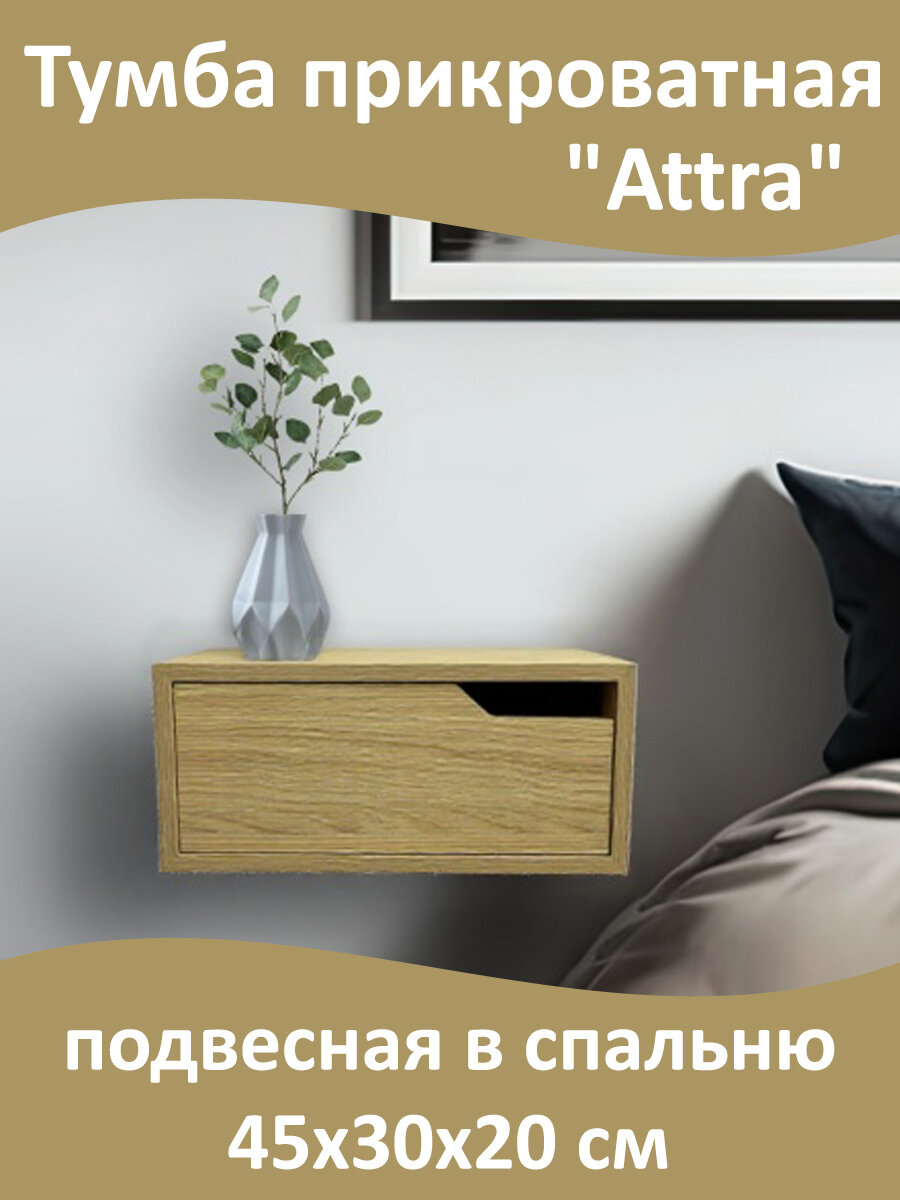 СохранитьТумба прикроватная "Attra" подвесная в спальню, настенная, 1 ящик, сторона правая, 45х30х20 см интересное: