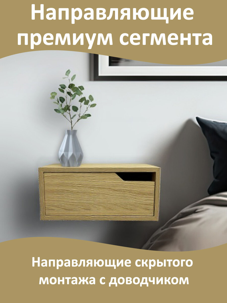 Тумба прикроватная "Attra" подвесная в спальню, настенная, 1 ящик, сторона правая, 50х30х20 см