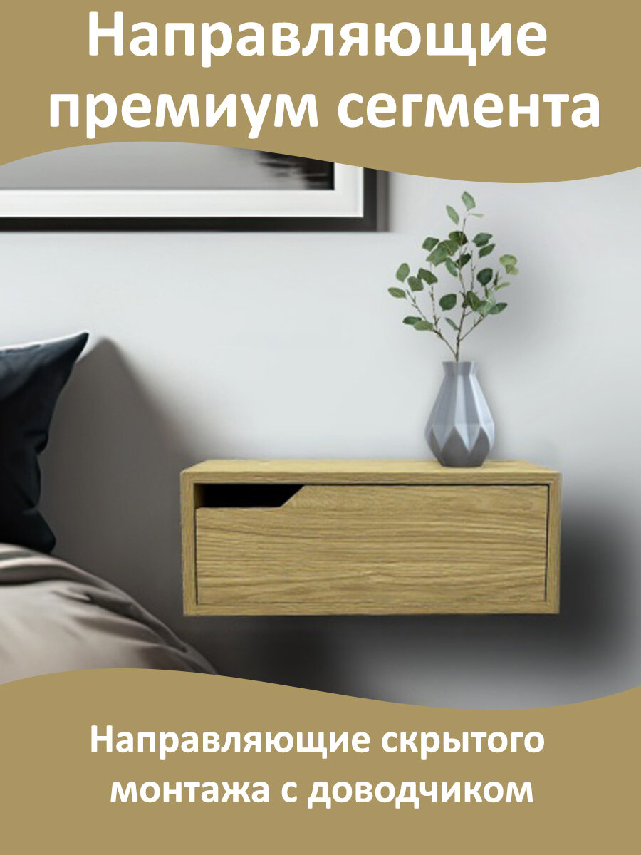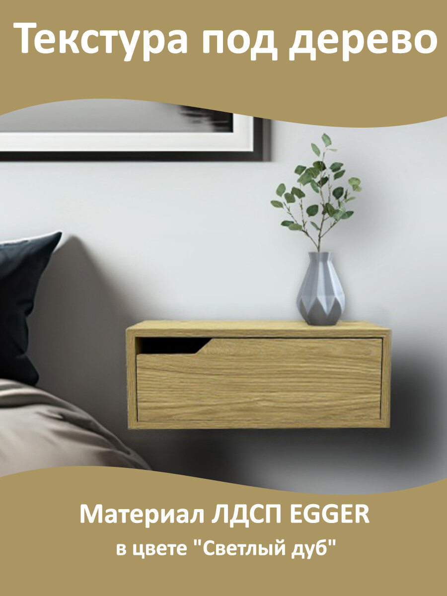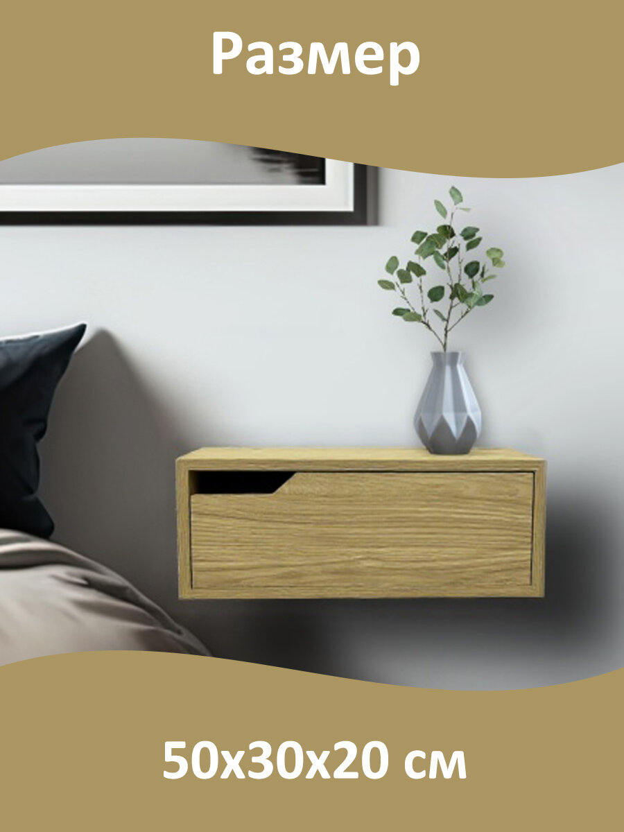 СохранитьТумба прикроватная "Attra" подвесная в спальню, настенная, 1 ящик, сторона левая, 50х30х20 см, консоль интересное: