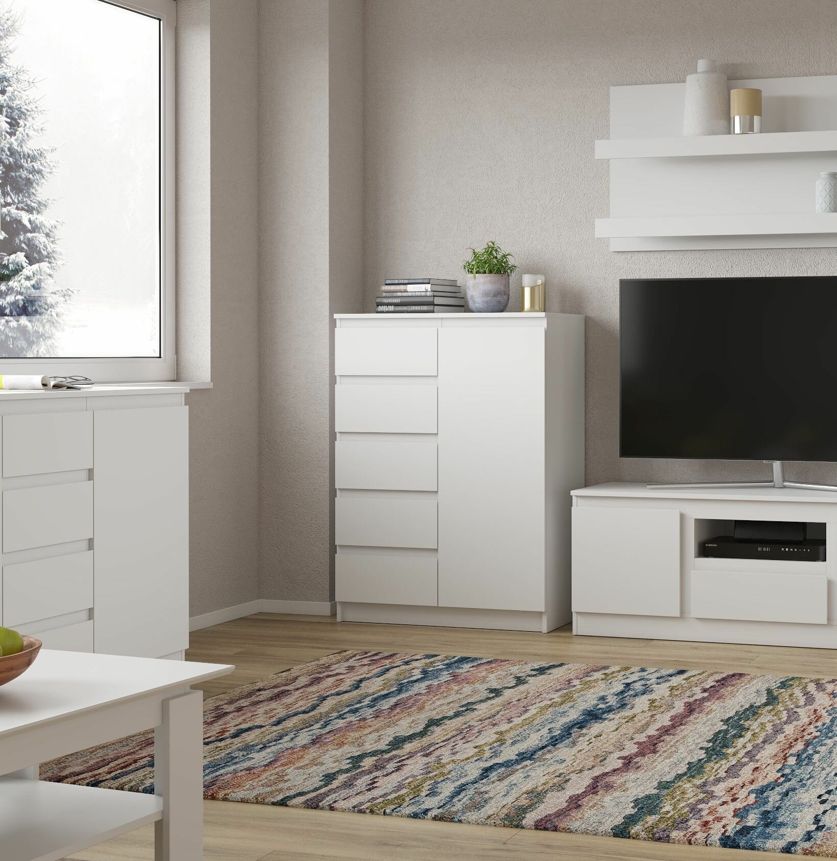 Купить Комод деревянный с выдвижными ящиками и распашной дверцей STARK T-15 Белый, 83х114,3х43,3 см