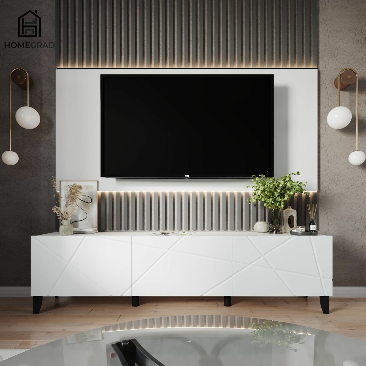 Тумба HomeGrad ТВ-4, под телевизор, ЛДСП, распашные дверцы, цвет дуб сонома, белая, графит