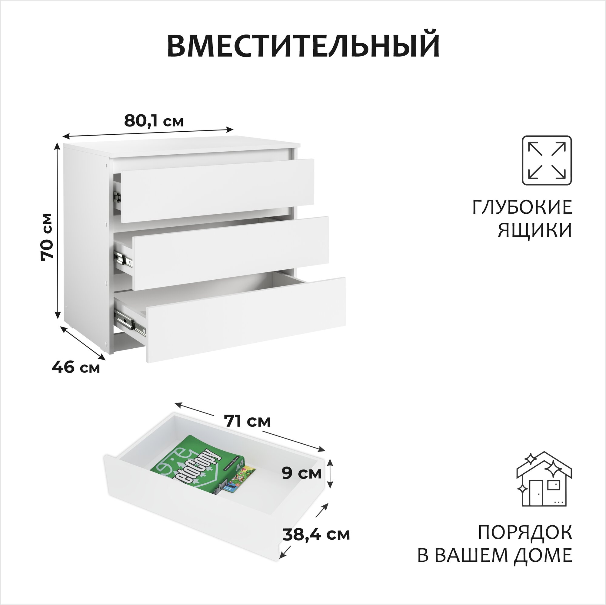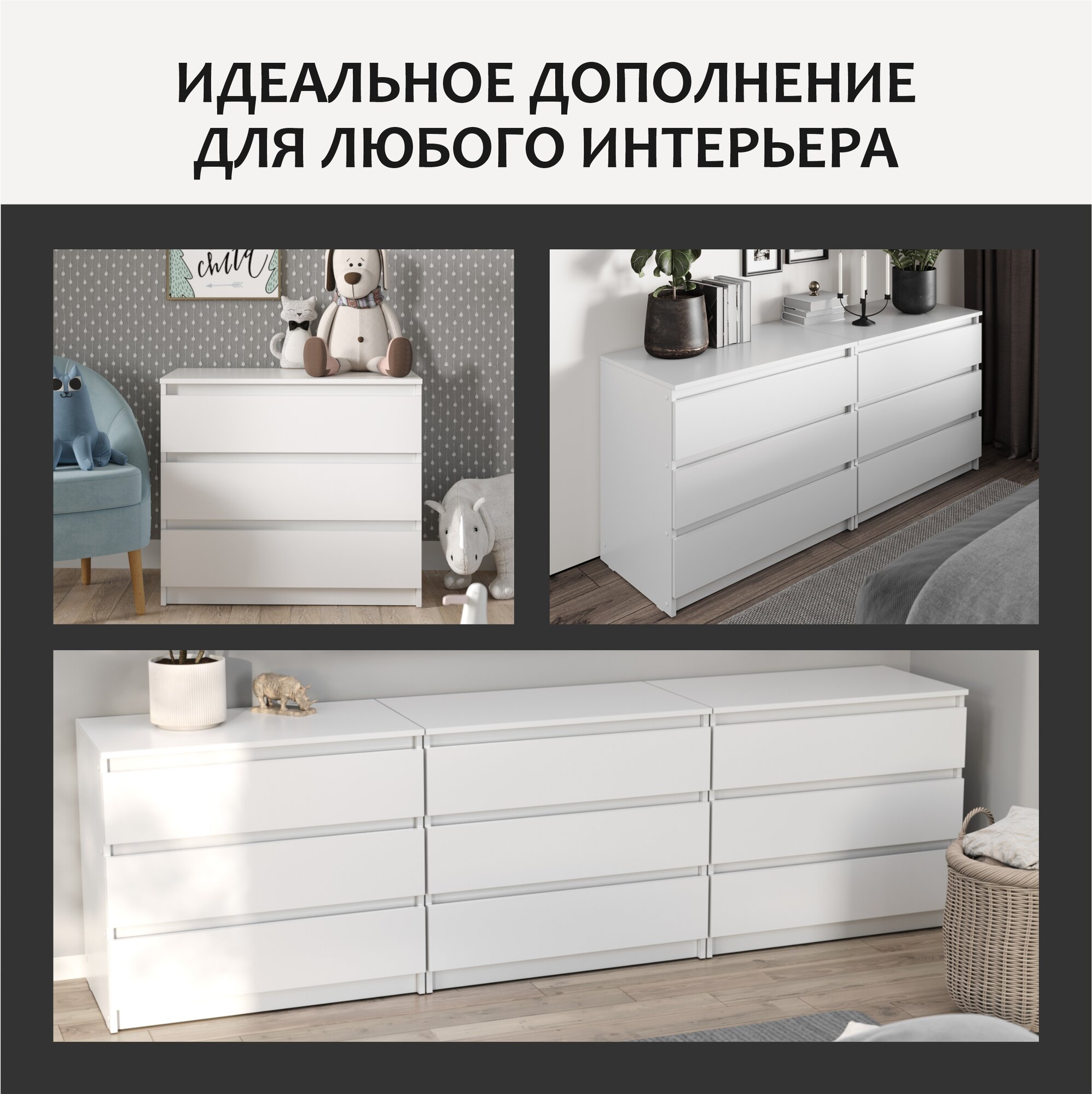 Комод для одежды белый Lazurit Эльбрус узкий деревянный 3 ящика 80х46х70 см интересное: