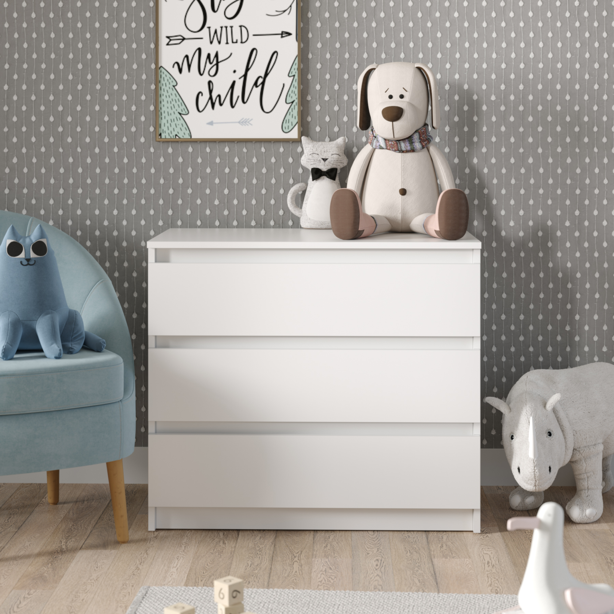 Купить Комод для одежды белый Lazurit Эльбрус узкий деревянный 3 ящика 80х46х70 см