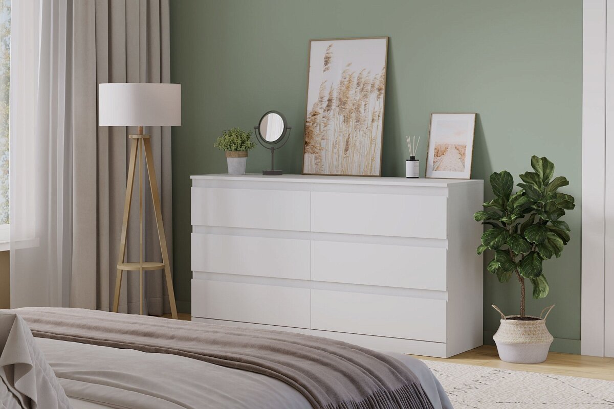 Комод МебельЛэнд24 Мальм - 15 Белый 140x40x77 с 6 ящиками