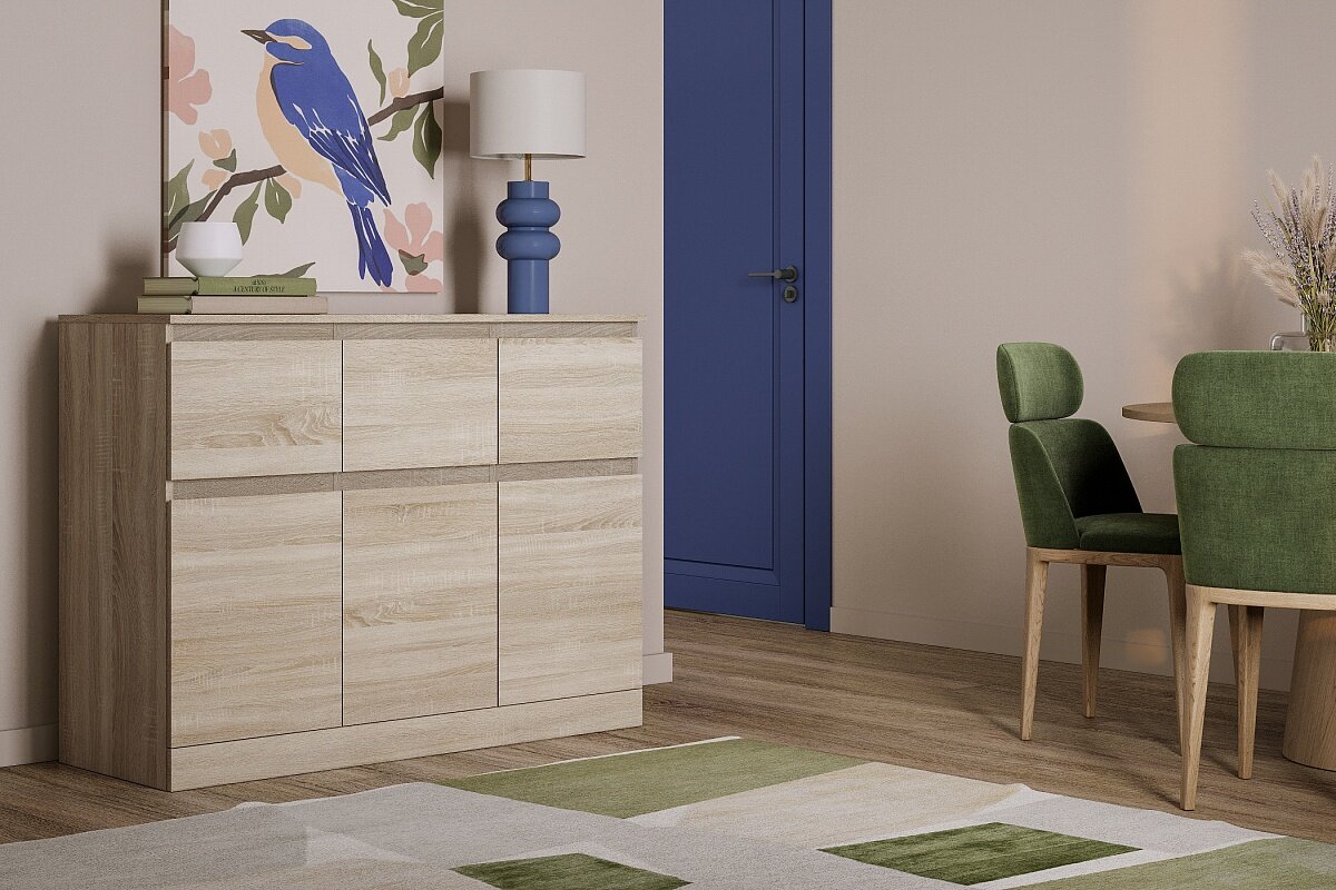 Комод МебельЛэнд24 Мальм - 22 Дуб Сонома 120x40x85 дуб светлый двухдверный с 3 ящиками