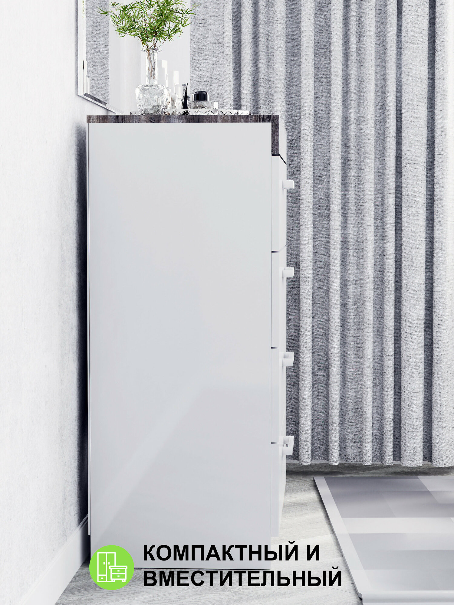 Комод "Модерн" 700-4 ящика, В*Ш*Г (см) 95х70х40, ЛДСП, белый / сосна рокпорт интересное:
