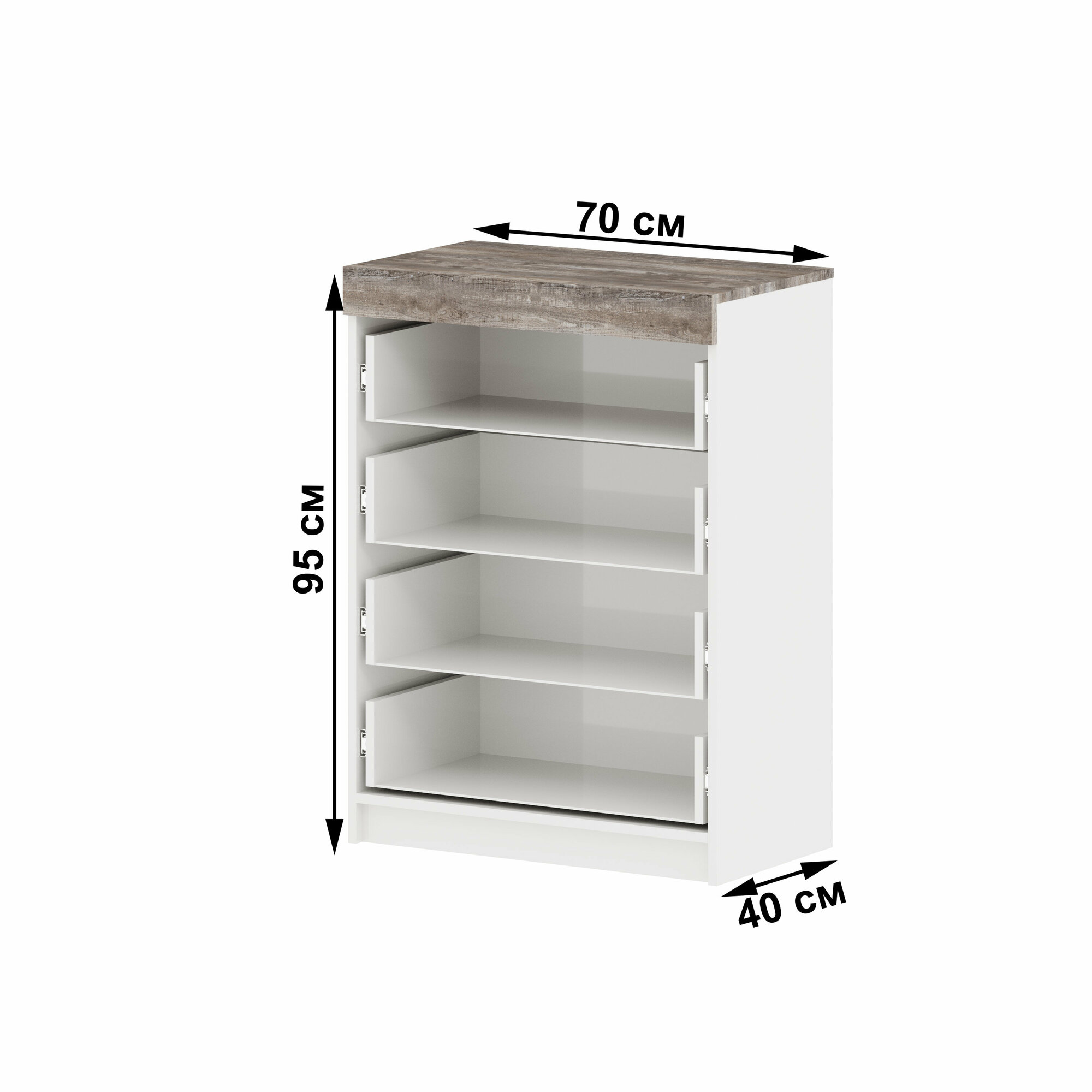 Купить Комод "Модерн" 700-4 ящика, В*Ш*Г (см) 95х70х40, ЛДСП, белый / сосна рокпорт