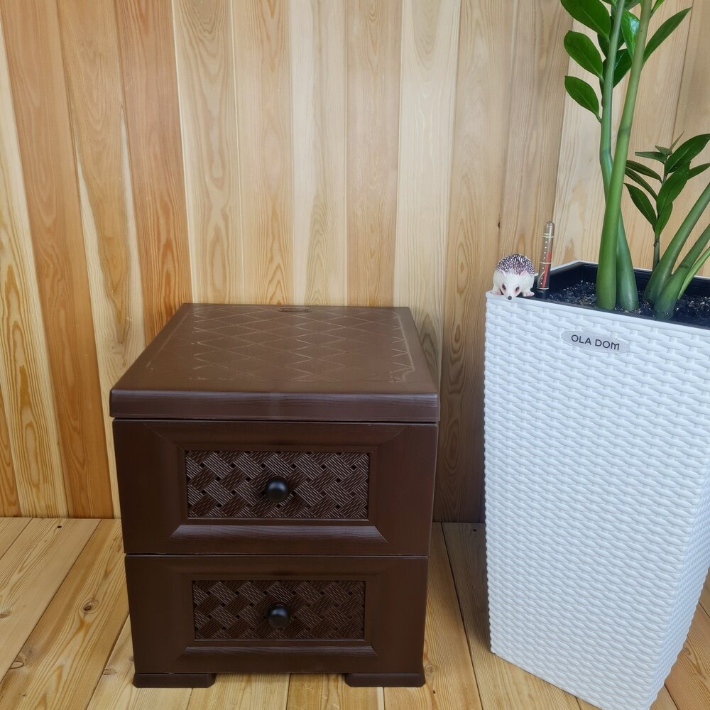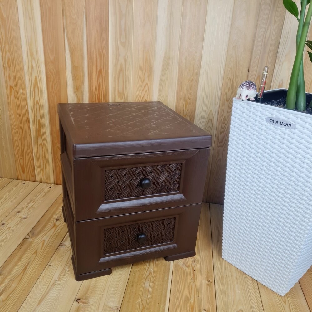 Купить Комод-Прикроватная тумба, Пластиковый, усиленный, матово-глянцевая фактура дерева. 2 ящика. Цвет: Коричневый. Арт: К-001-Д.