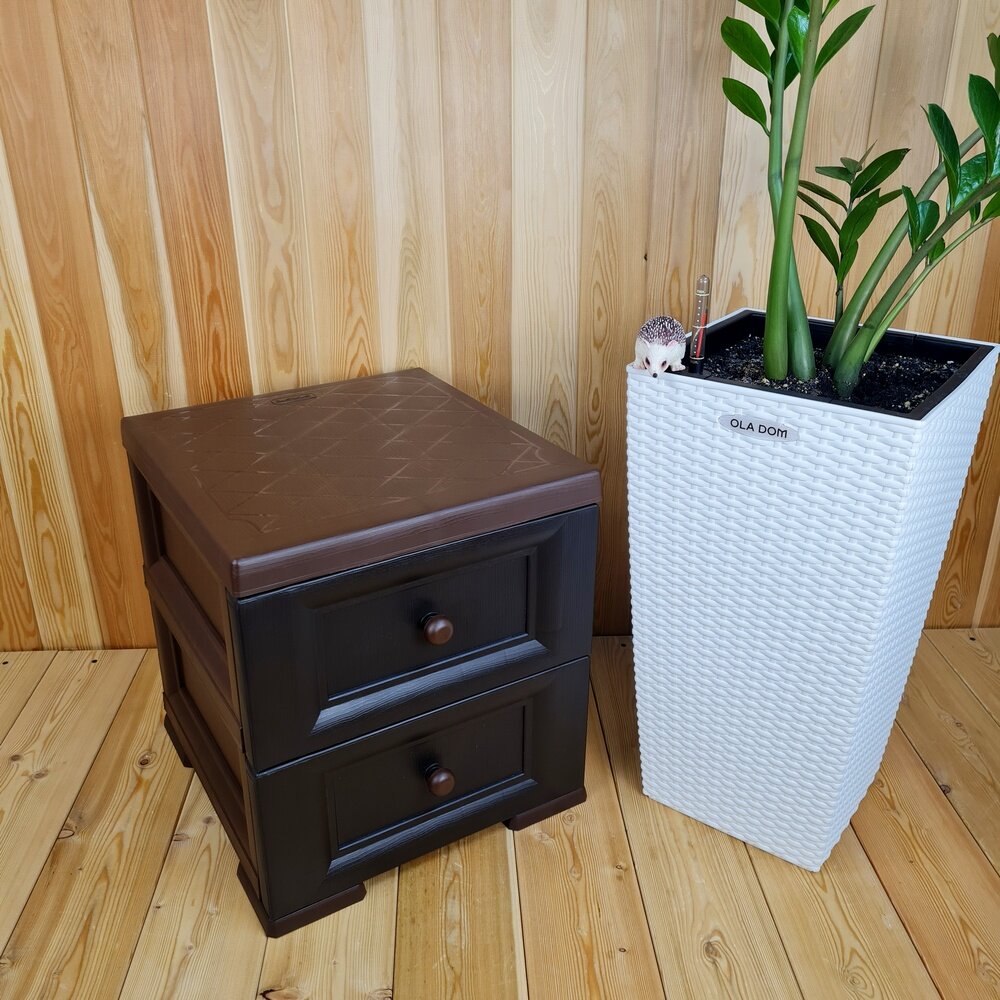 Купить Комод-Прикроватная тумба, Пластиковый, усиленный, матово-глянцевая фактура дерева. 2 ящика. Цвет: Коричнево-шоколадный. Арт: К-011-Д2Ш.