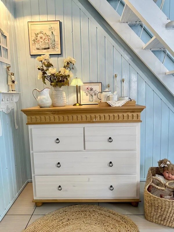 Ниже Вы можете прочитать отзывы на Комод для пеленания деревянный 4 ящика для детских вещей белый воск / антик Хельсинки, ознакомится с подробными характеристиками, посмотреть интересные обзоры и фотографии на Комод для пеленания деревянный 4 ящика для детских вещей белый воск / антик Хельсинки.