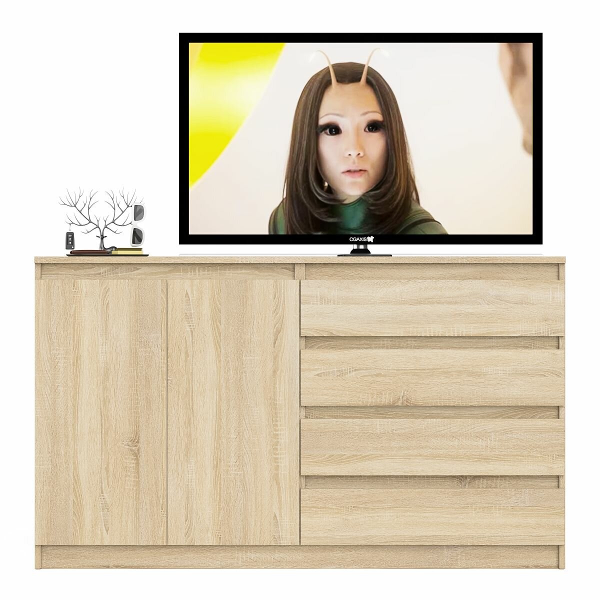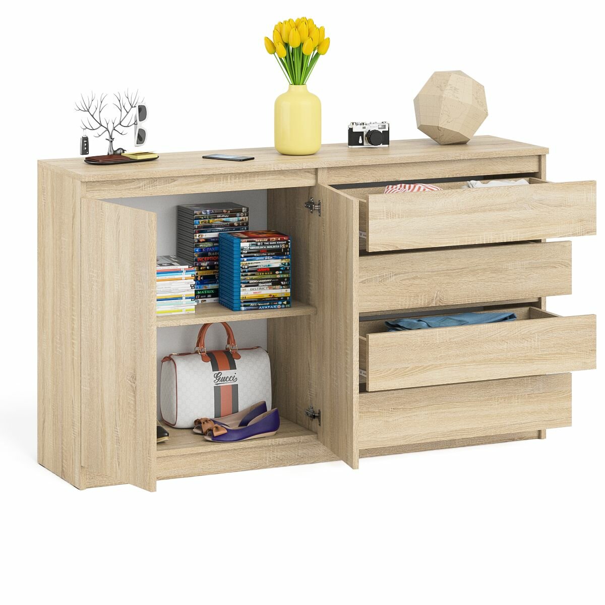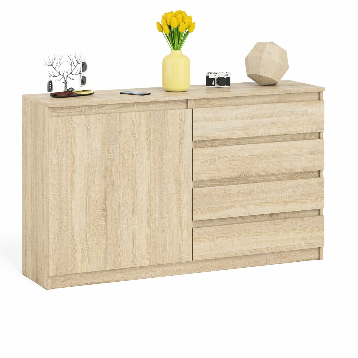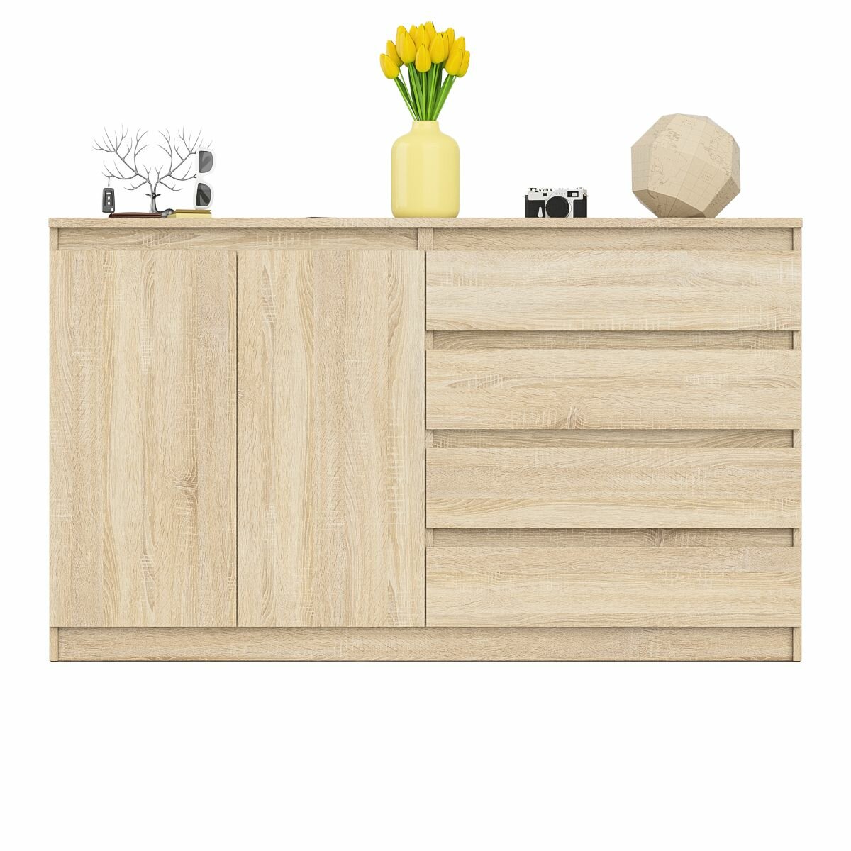 Комод широкий на четыре ящика и две дверки Мори МК1600.1 цвет дуб сонома/белый, ШхГхВ 160,4х41х94 см, НЕ универсальная сборка
