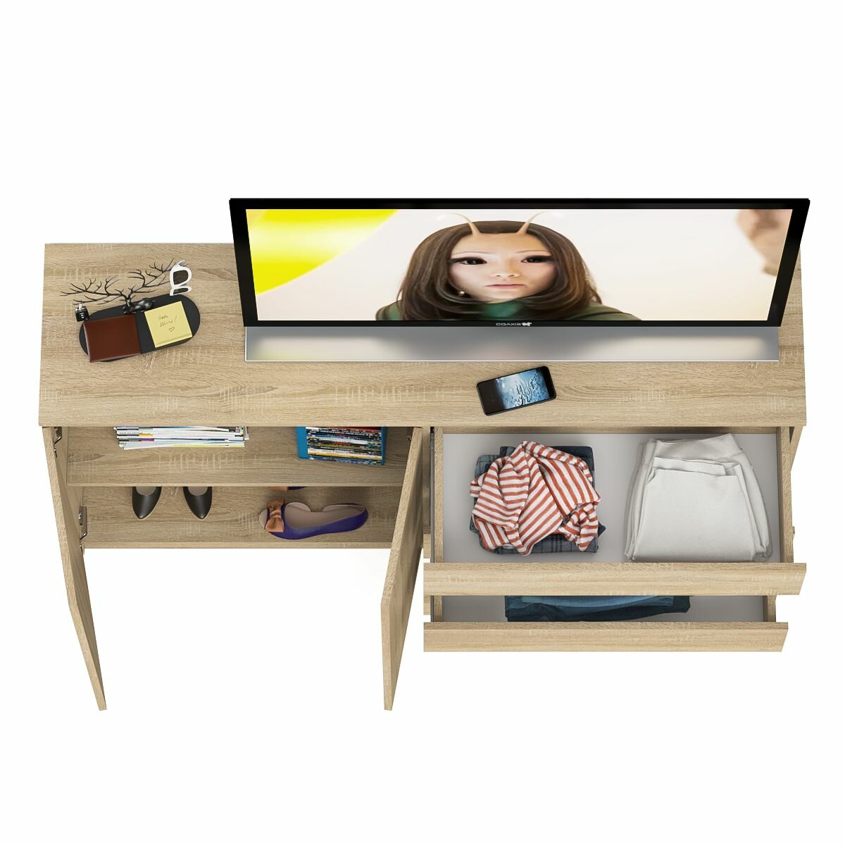 СохранитьКомод широкий на четыре ящика и две дверки Мори МК1600.1 цвет дуб сонома, ШхГхВ 160,4х41х94 см, НЕ универсальная сборка интересное: