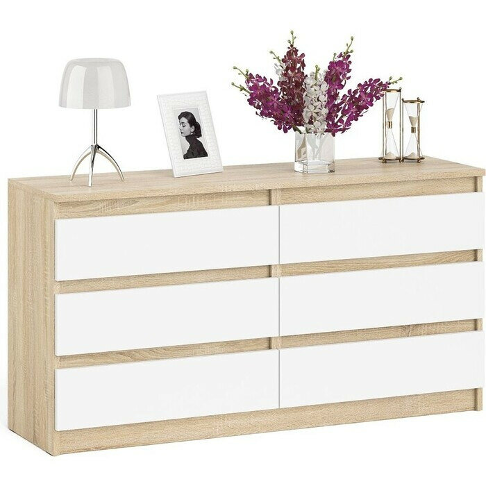 Комод для одежды с ящиками СВК Мори МК1200.6, 120х41х73 см, 6 ящиков, цвет дуб сонома/белый
