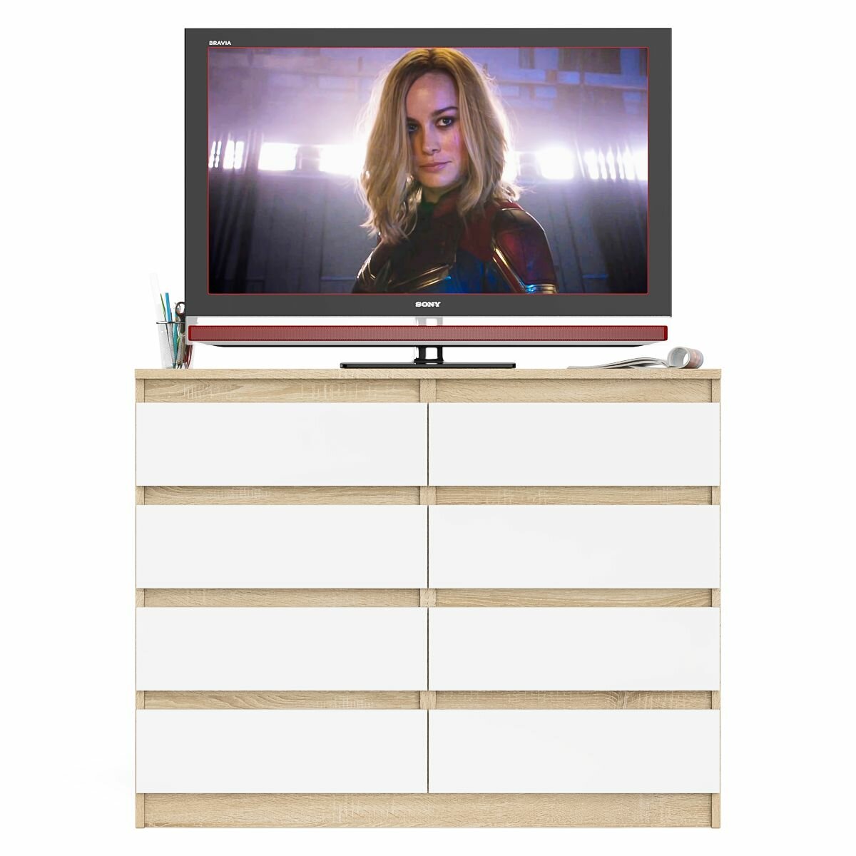 Купить Комод для одежды с ящиками СВК Мори МК1200.8, 120х41х94 см, 8 ящиков, цвет дуб сонома/белый