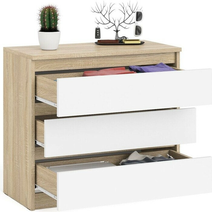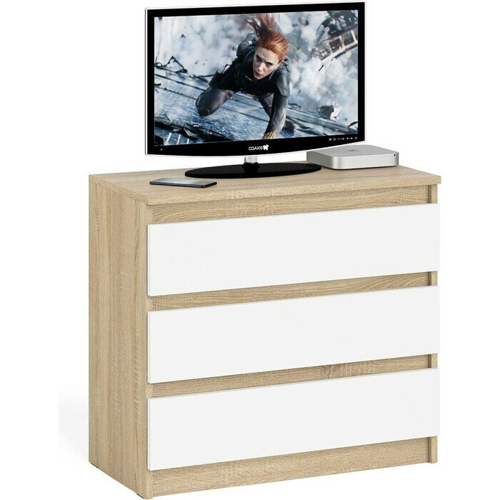 Купить Комод Мори с 3мя ящиками МК800.1, цвет дуб сонома/ белый, ШхГхВ 80,4х41х73 см. СВК