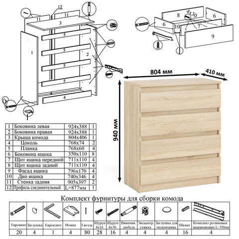 СохранитьКомод для одежды с ящиками СВК Мори МК800.4, 80х41х94 см, 4 ящика, цвет дуб сонома интересное: