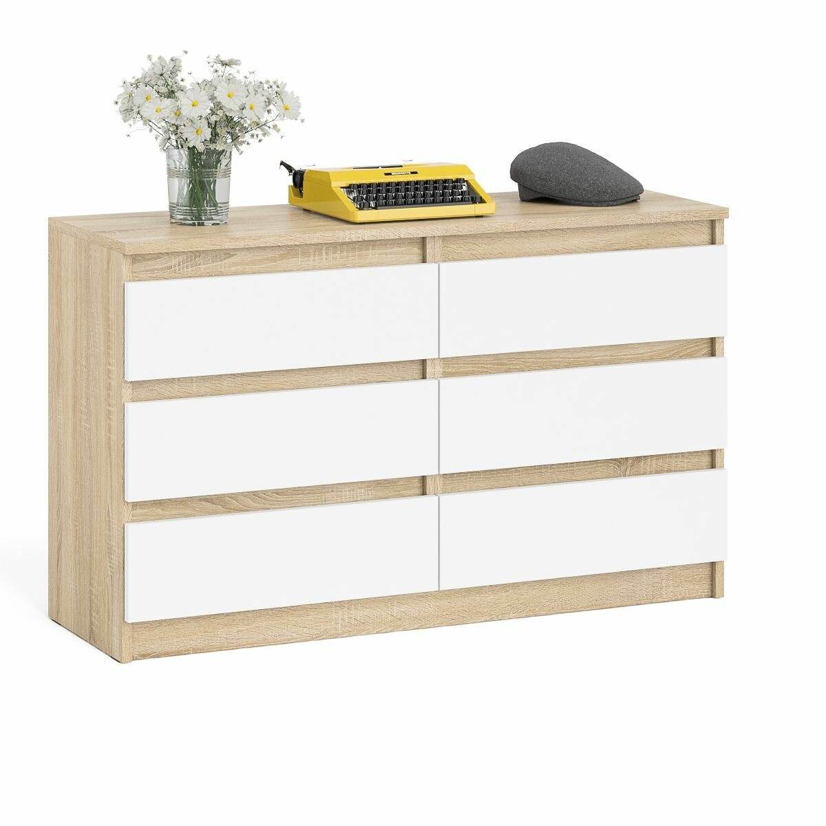 Купить Комод для одежды с ящиками СВК Мори МК1200.6, 120х41х73 см, 6 ящиков, цвет дуб сонома/белый