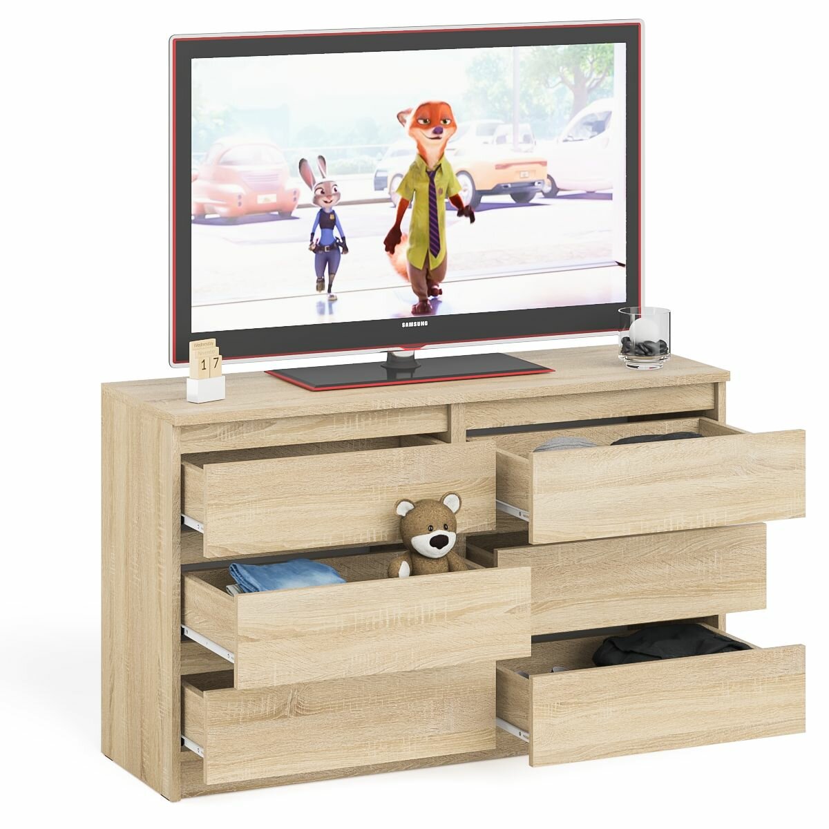 Комод для одежды с ящиками СВК Мори МК1200.6, 120х41х73 см, 6 ящиков, цвет дуб сонома/белый