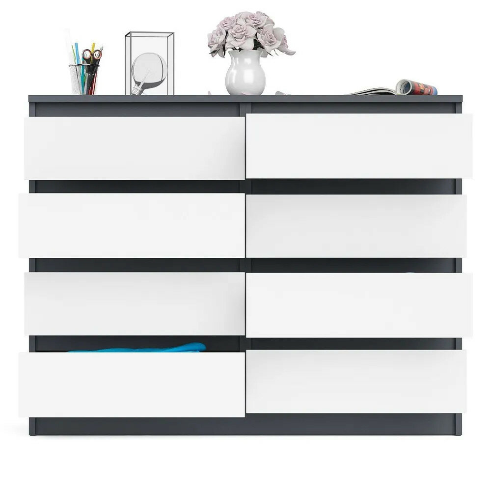 Комод восемь выдвижных ящиков Мори МК1200.8 цвет графит/белый, ШхГхВ 120,4х41х94 см.