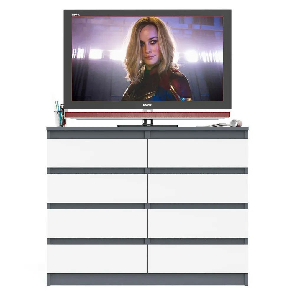 Купить Комод 8 ящиков СВК МК1200.8 Мори цвет графит/белый ШхГхВ 120,4х41х94 см