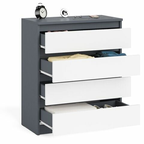Комод для одежды большой СВК Мори МК1200.4 с ящиками, цвет графит/белый
