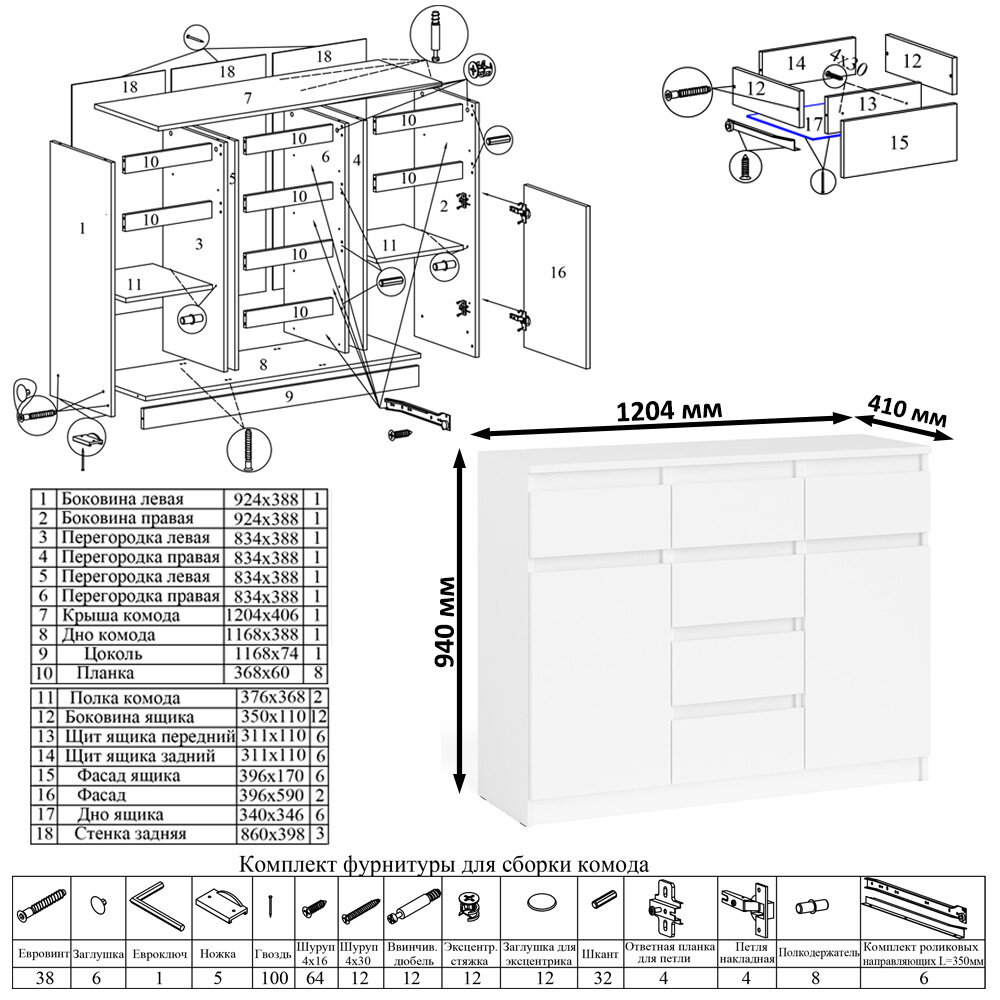 Комод СВК Мори МК1200.8 Белый Размеры: Высота 940мм Глубина 410мм Ширина 1204мм