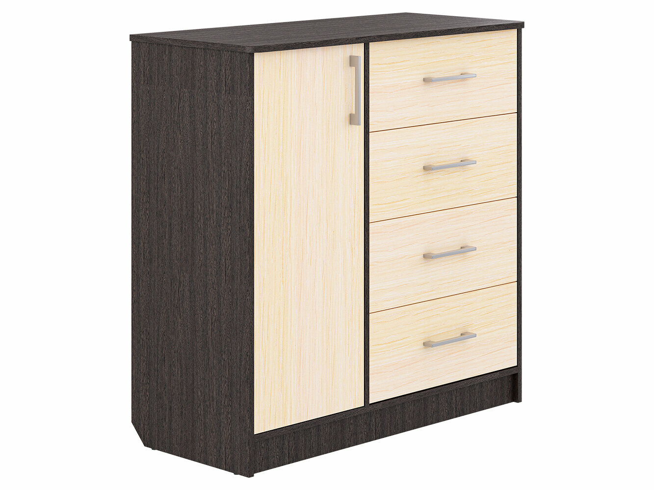 Купить Комод МК"Пирамида" К-09, 4 ящика и 1 распашная дверца, цвет венге/дуб молочный, 102х100х45 см