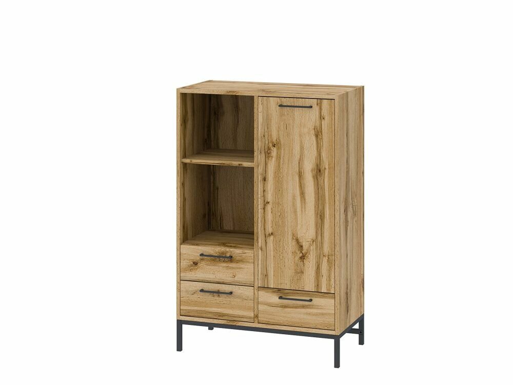Купить Шкаф полуоткрытый с тремя ящиками Глосс ТМ ДЭФО 72x38x111, на металле, дуб натюрель/черный