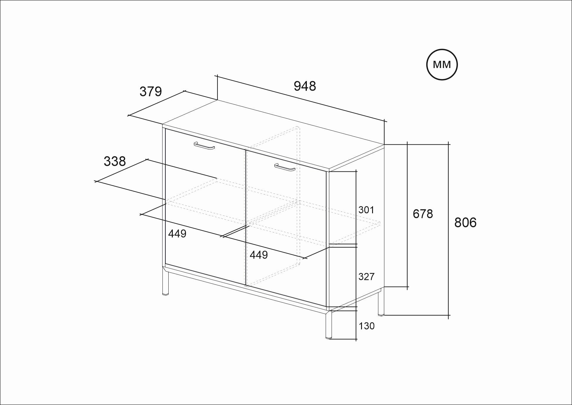СохранитьТумба двухдверная закрытая с полками Глосс ТМ ДЭФО 95х38х81 см, белый/черный интересное: