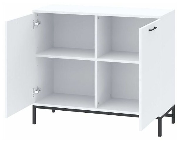 Тумба двухдверная с полками Глосс ТМ ДЭФО 72х45х51, на металле, белый/черный