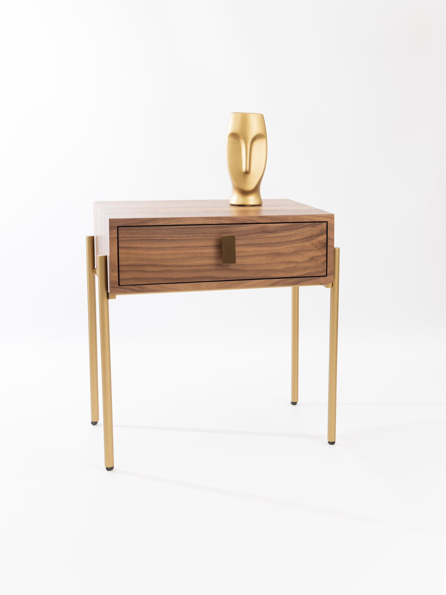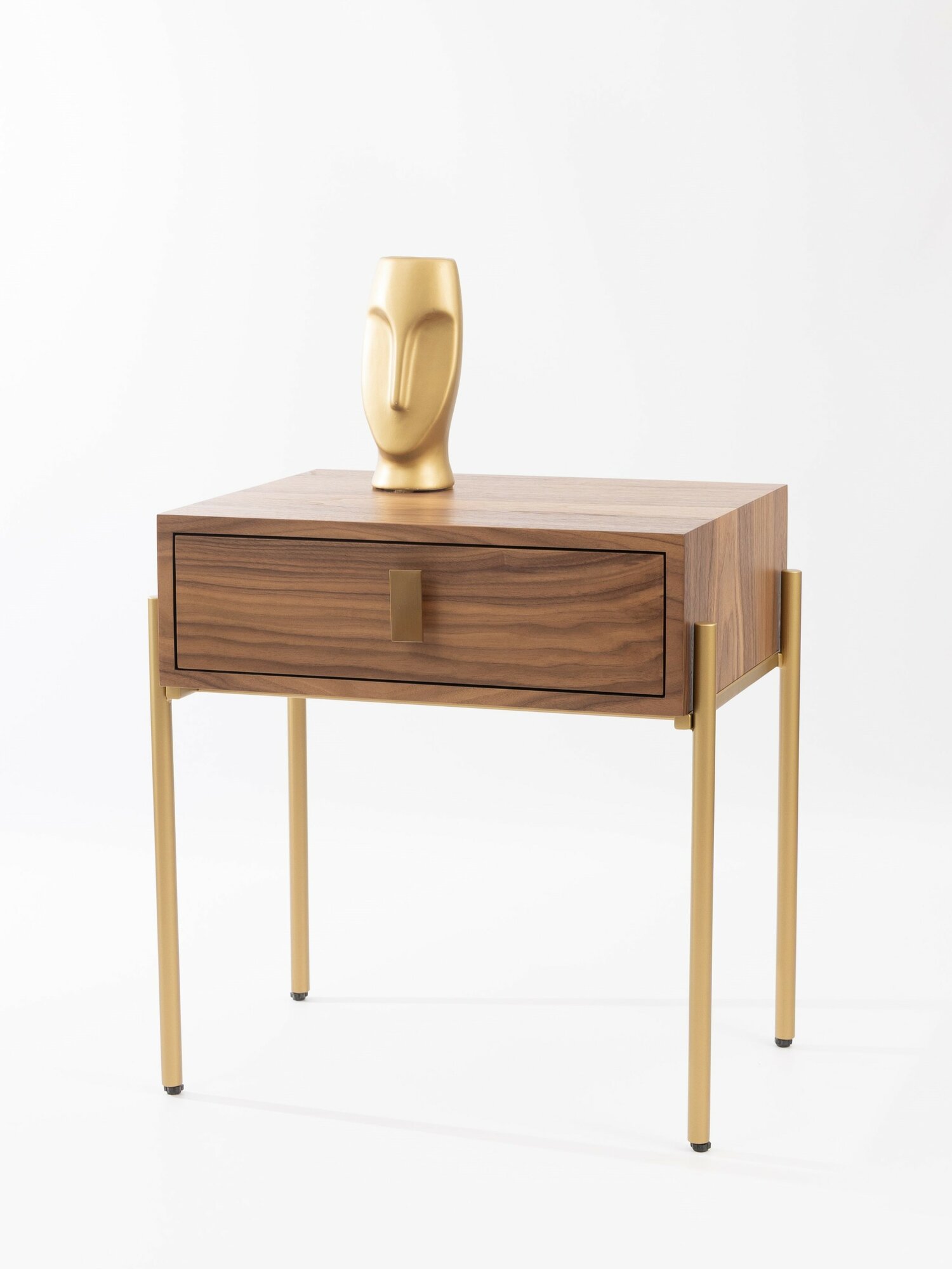 Тумба прикроватная шпон ореха, тумбочка с ящиком напольная на золотых ножках, дизайнерская мебель для спальни Walnut Gold 54х40х56 см интересное: