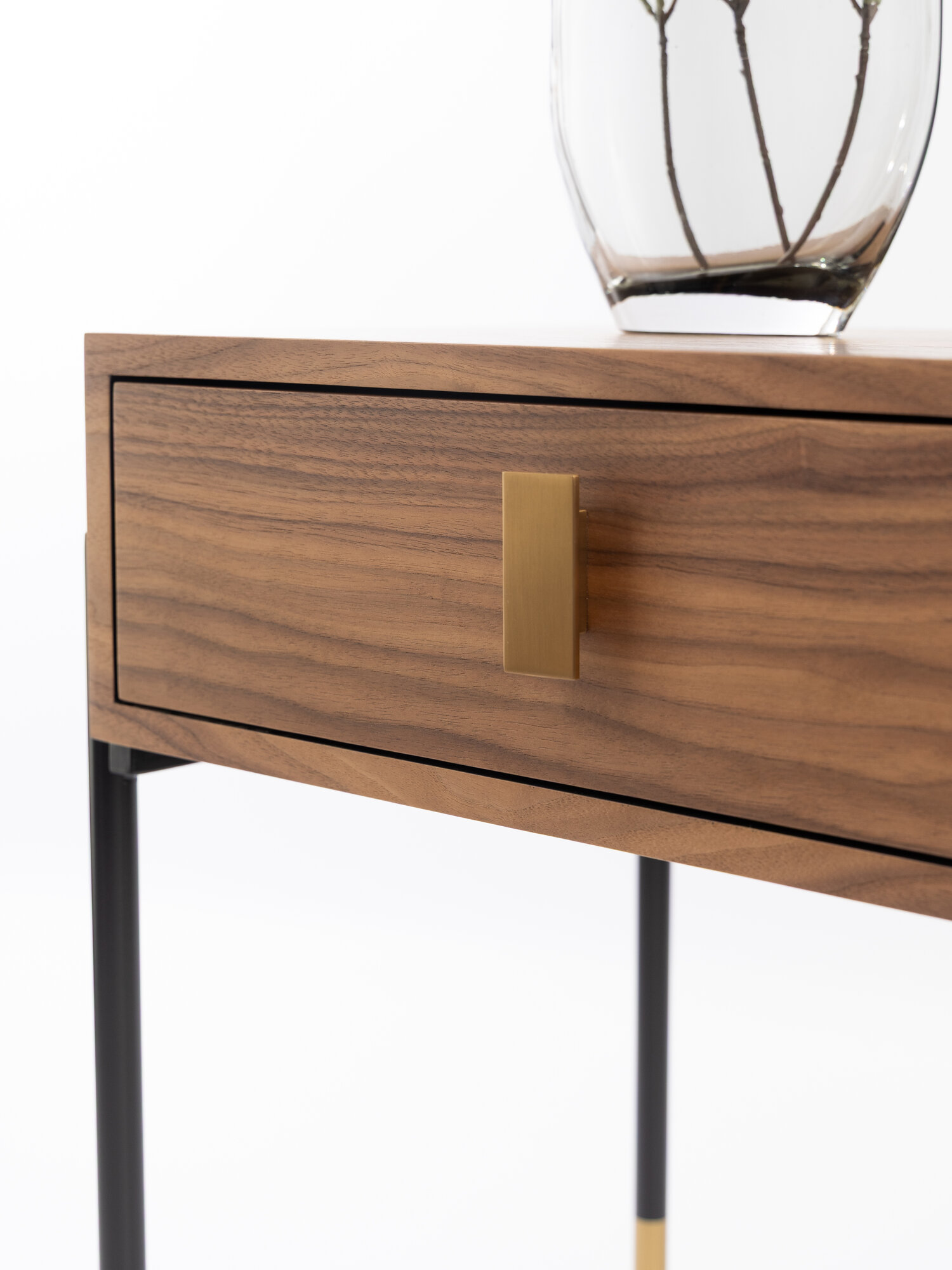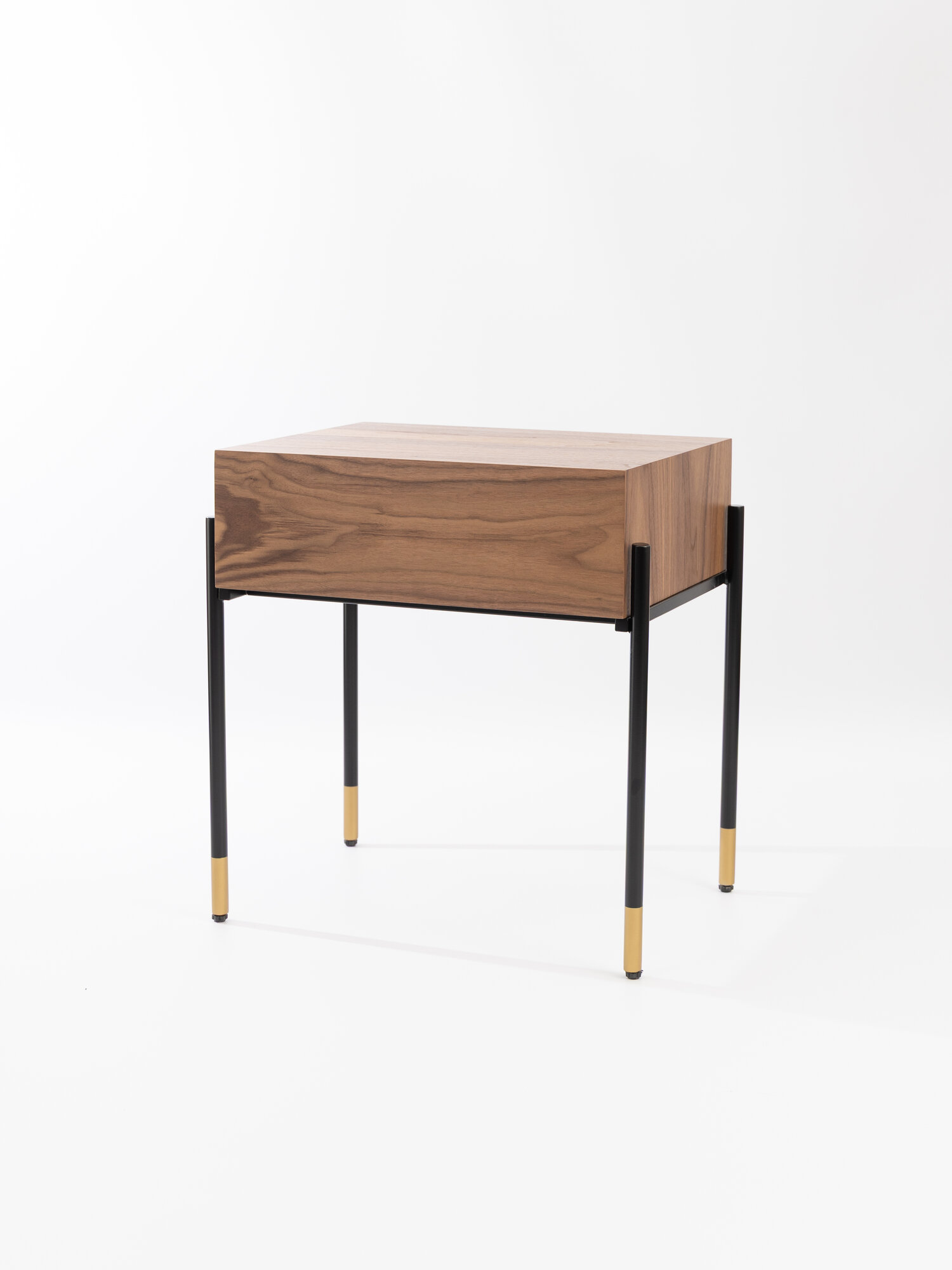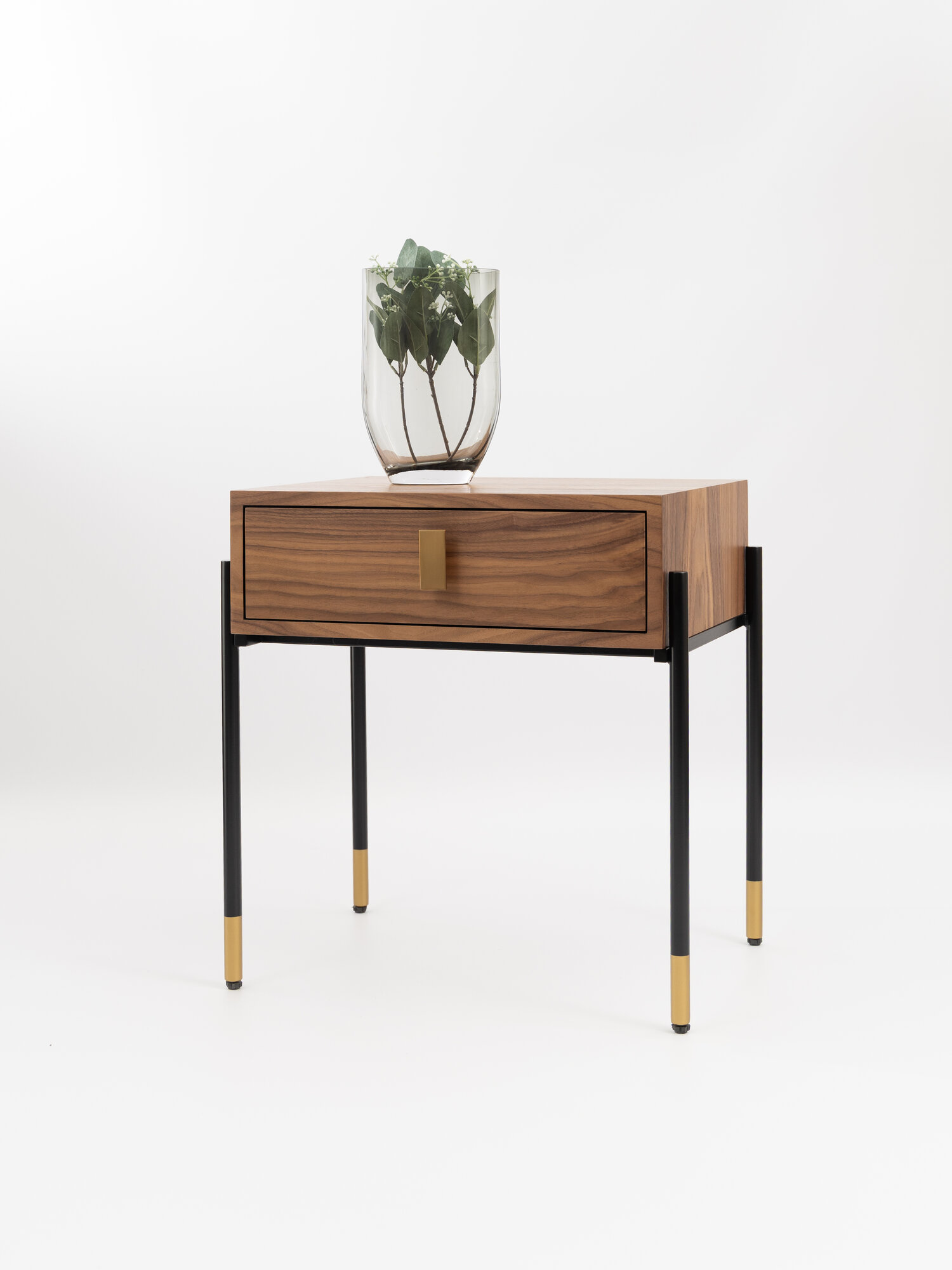 Купить Тумба прикроватная шпон ореха, тумбочка с ящиком напольная на черных ножках, дизайнерская мебель для спальни Walnut Black 54х40х56 см