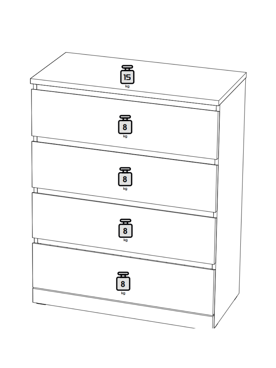 Комод с ящиками для одежды, белый, литен, 4 ящика, 80х48х100 см