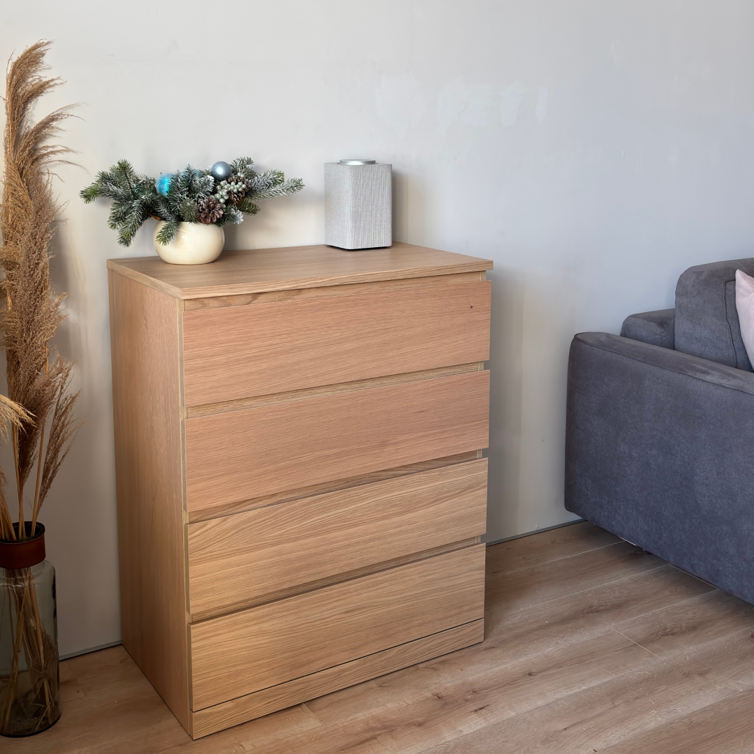 Комод с ящиками для одежды, ясень, литен (MALM IKEA), 4 ящика, 80х48х100 см