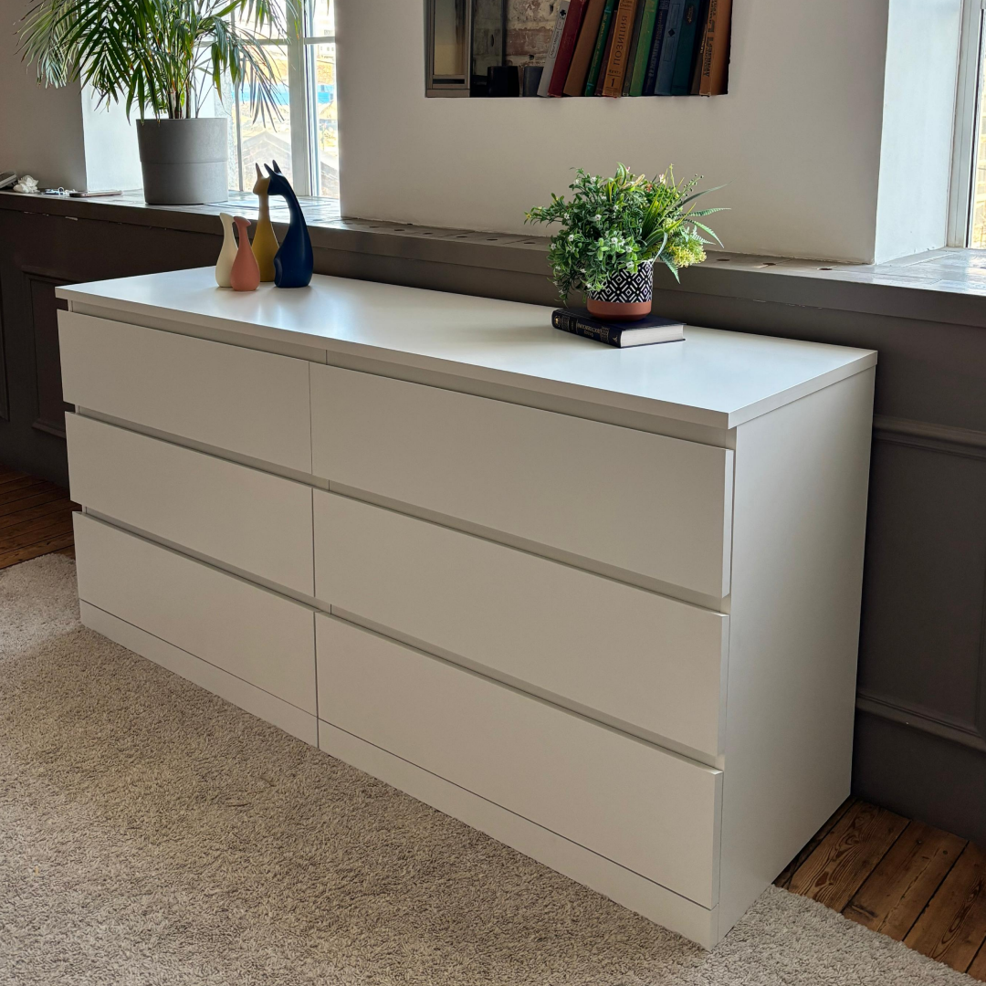 Купить Комод с ящиками для одежды, белый, литен, 6 ящиков, 160х48х77 см