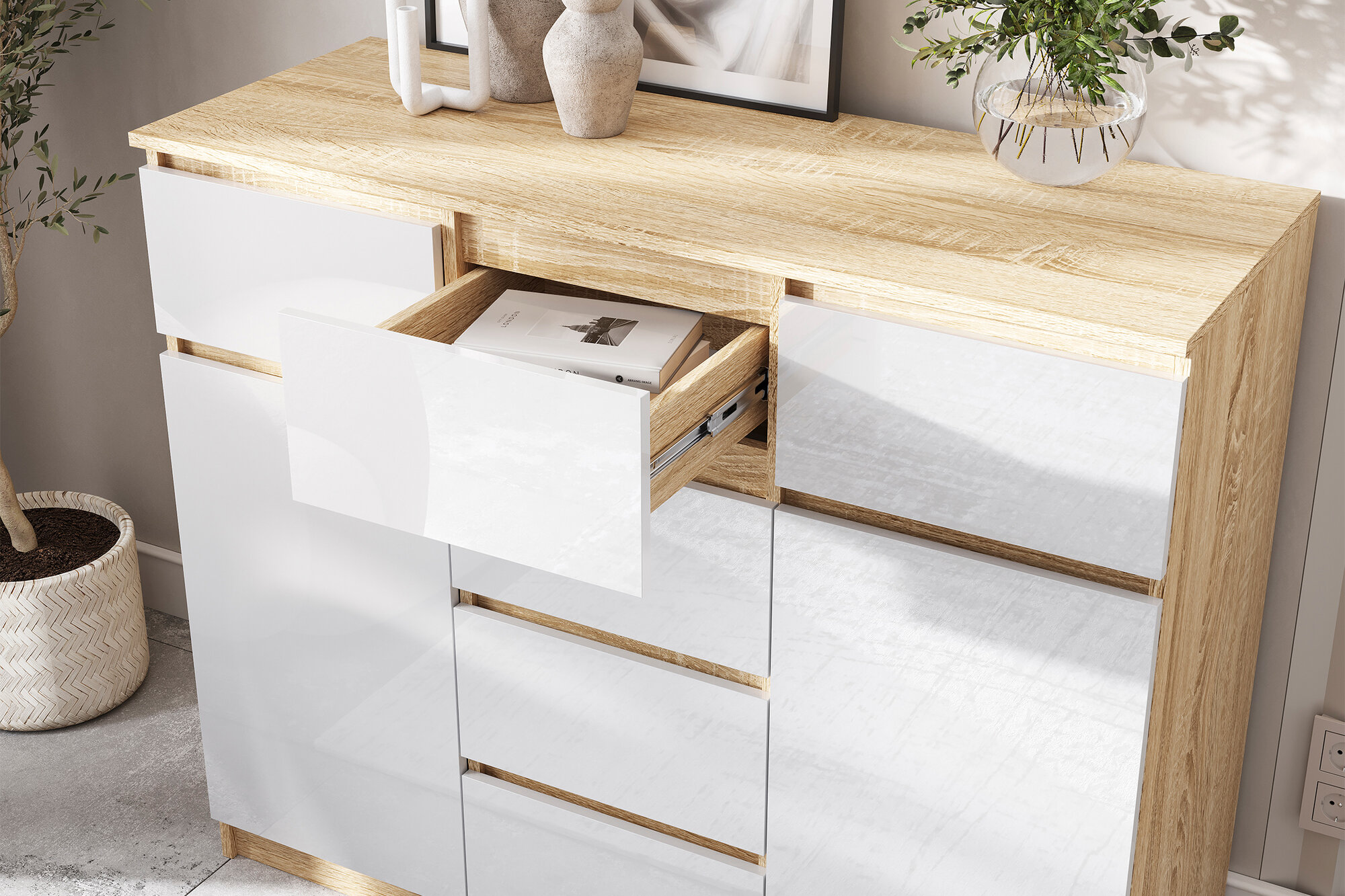 Комод для одежды Нонтон Челси, дуб сонома / белый глянец, 120х45х76.8 см